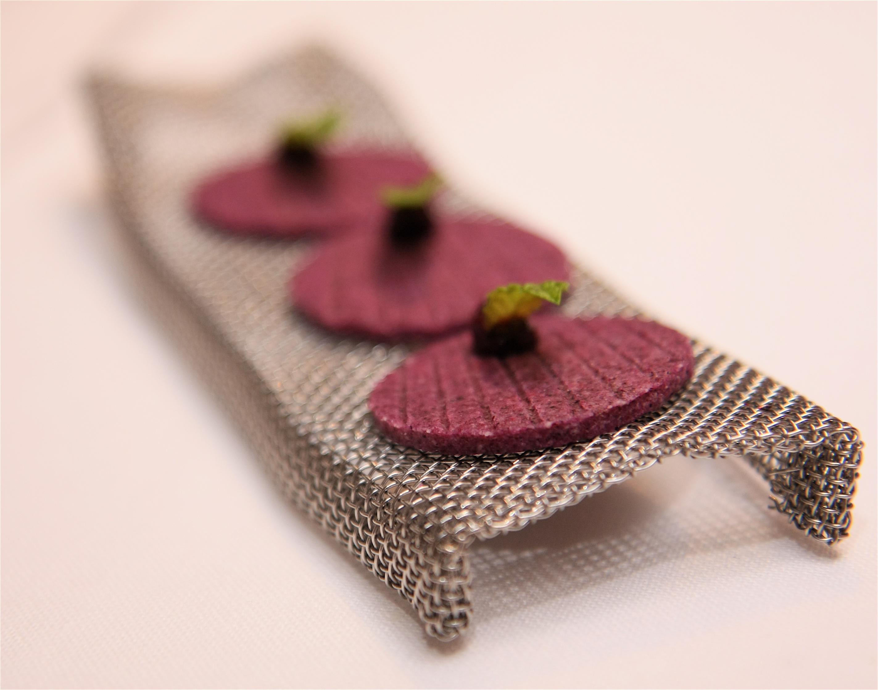Each chef looked to surpass the other in a new technique. Spherification, introduced by chef Ferran Adrià immersed a liquid (combined with sodium alginate) in a water bath containing calcium. The result was a perfect sphere of food that burst with flavor when eaten. By reversing the combination, Adrià was able to work with products that already contained calcium (like olives). Chef Wylie Dufresne partnered cubes of English muffin-breaded fried hollandaise, crispy wisps of Canadian bacon, and seasoned egg yolk cooked in an immersion circulator. He deconstructed the classic eggs Benedict and created a dish that looked nothing like eggs benedict. Yet, your taste buds said otherwise. Chef Soufiane mimicked the traditional Caprese salad by combining the tomato with food powders, creating a salad that looked nothing like the traditional one. Your mind battles with your senses in every bite.
