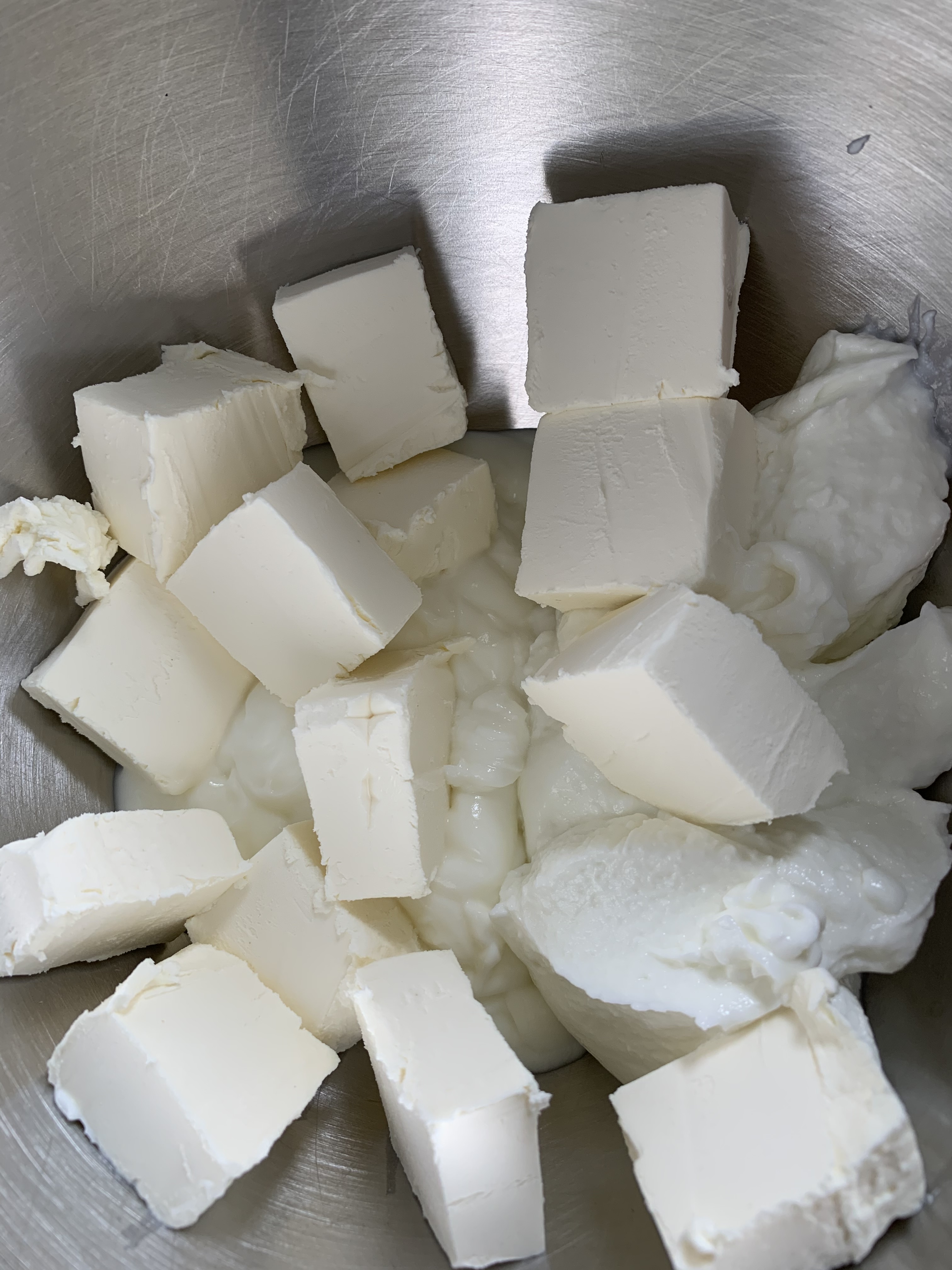 Cube cream cheese. Blend sour cream, yoghurt and cream cheese at low speed until firmly combined. Add seasoning mix and beat at high speed until light and fluffy. Add spread onto serving dish and refrigerate for 10 minutes (or until you have finished chopping/shredding toppings).