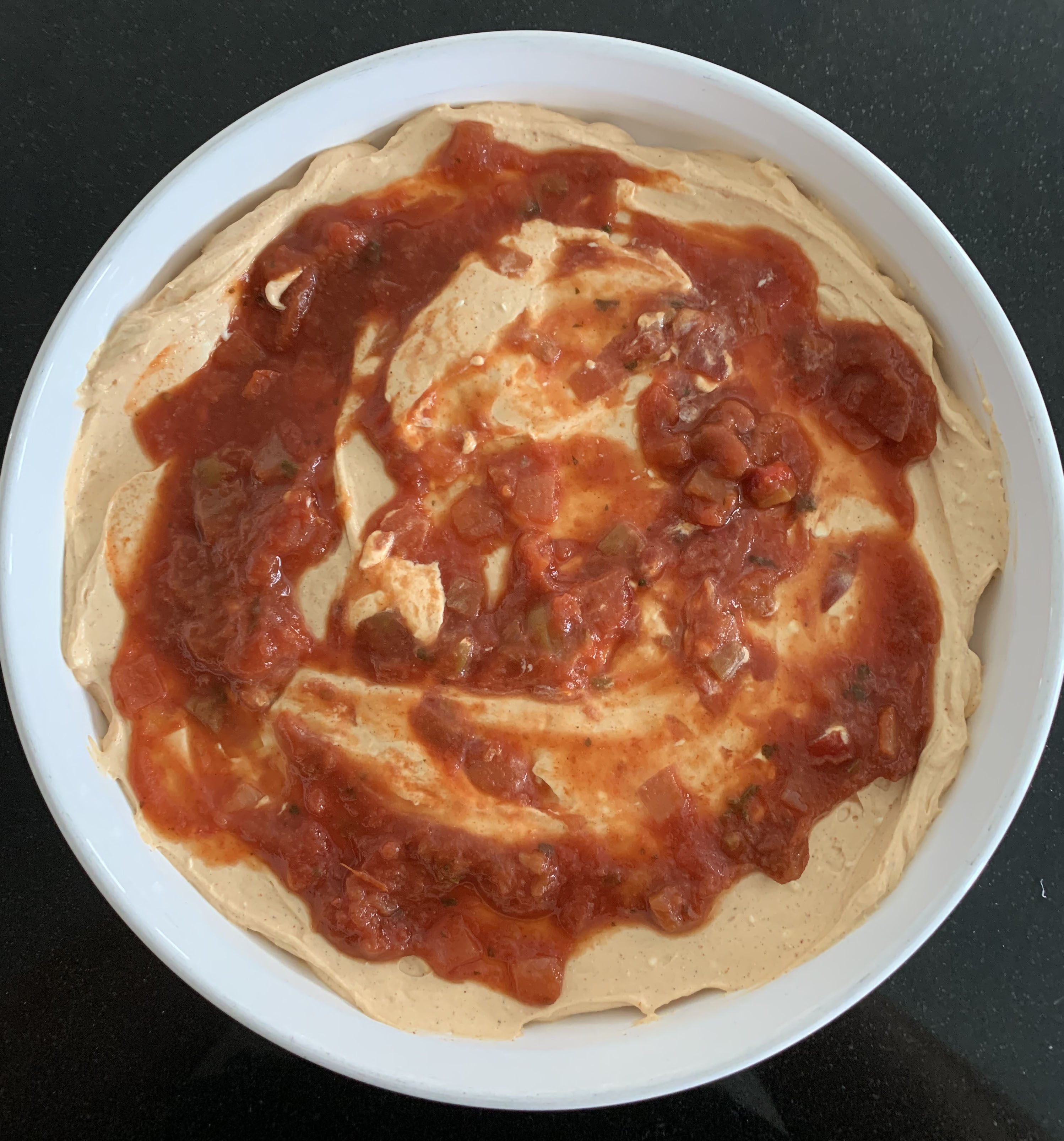 Turning Mexican food a little Greek, this nacho dip is great served with homemade pita chips. Prepare as soon as a day ahead for get togethers or for those cheat nights of junk food.