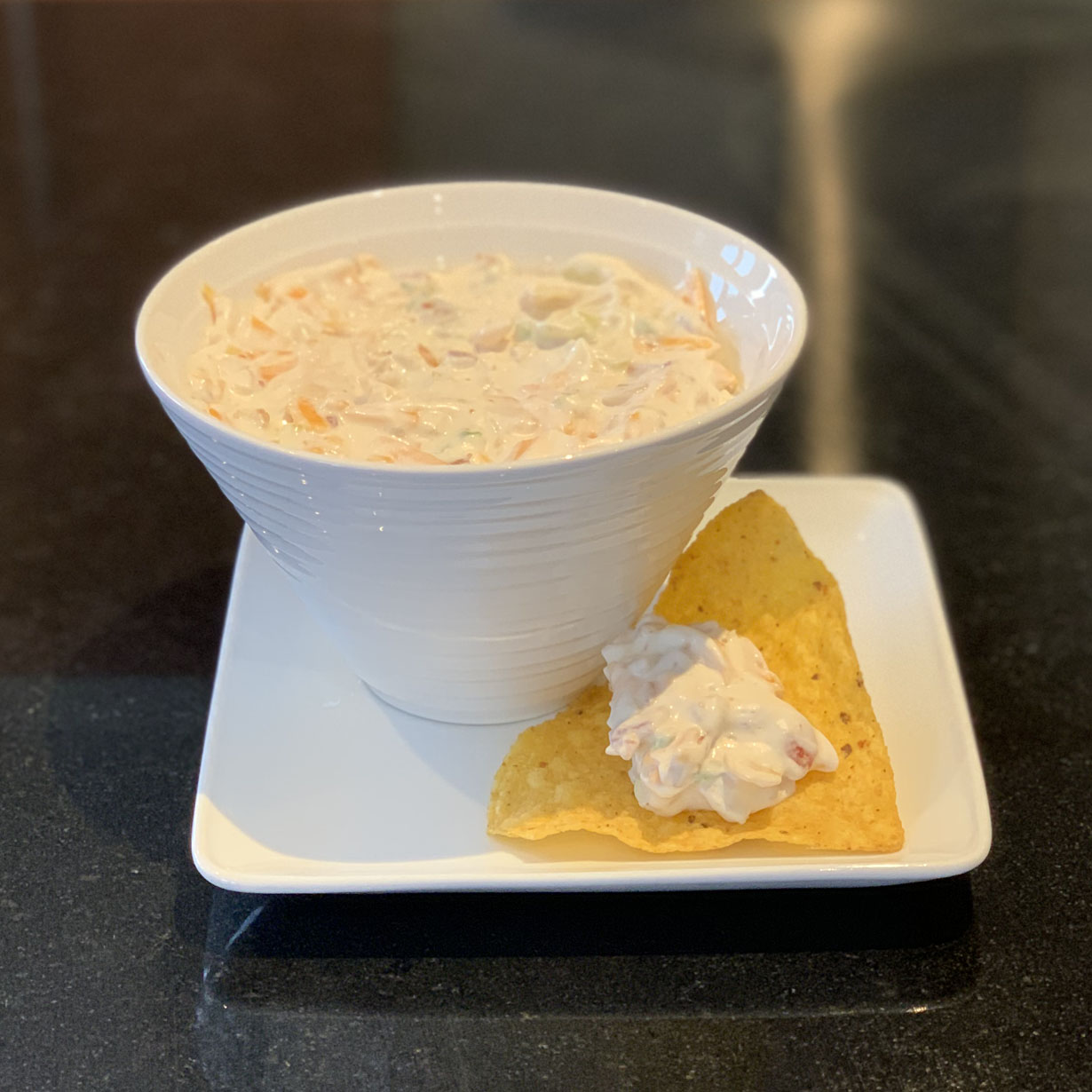 Rumor has it that this dip was originally served at Neiman Marcus. It has been a crowd-pleasing recipe for years that is surprisingly easy to make. An interesting combination of almonds, bacon, and cheese, this version is made with Greek yogurt. Its creaminess works exceptionally well with fresh vegetables or toasted naan bread.