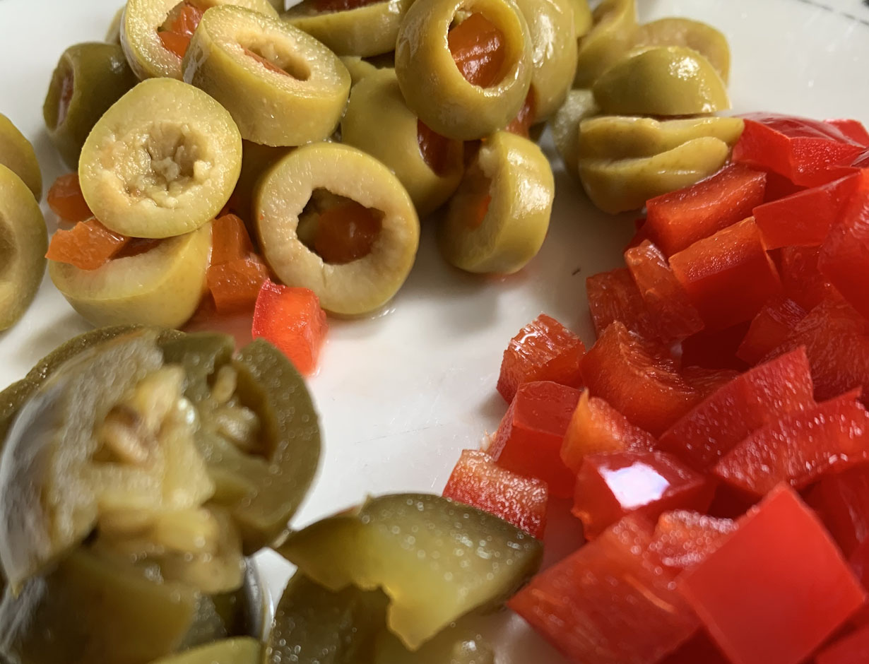 1 cup manzanilla olives, sliced