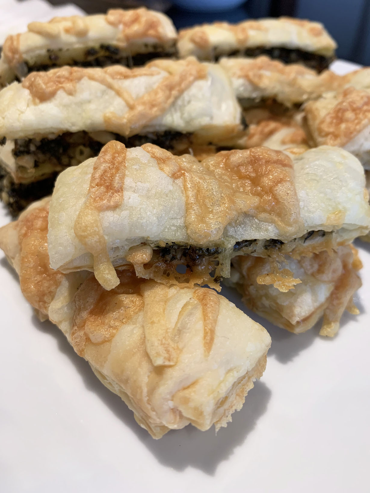 In the meantime, preheat the oven to 350°F. Cook the pesto bites in the oven for 25 to 30 minutes or until the pastry is golden brown and flaky.
