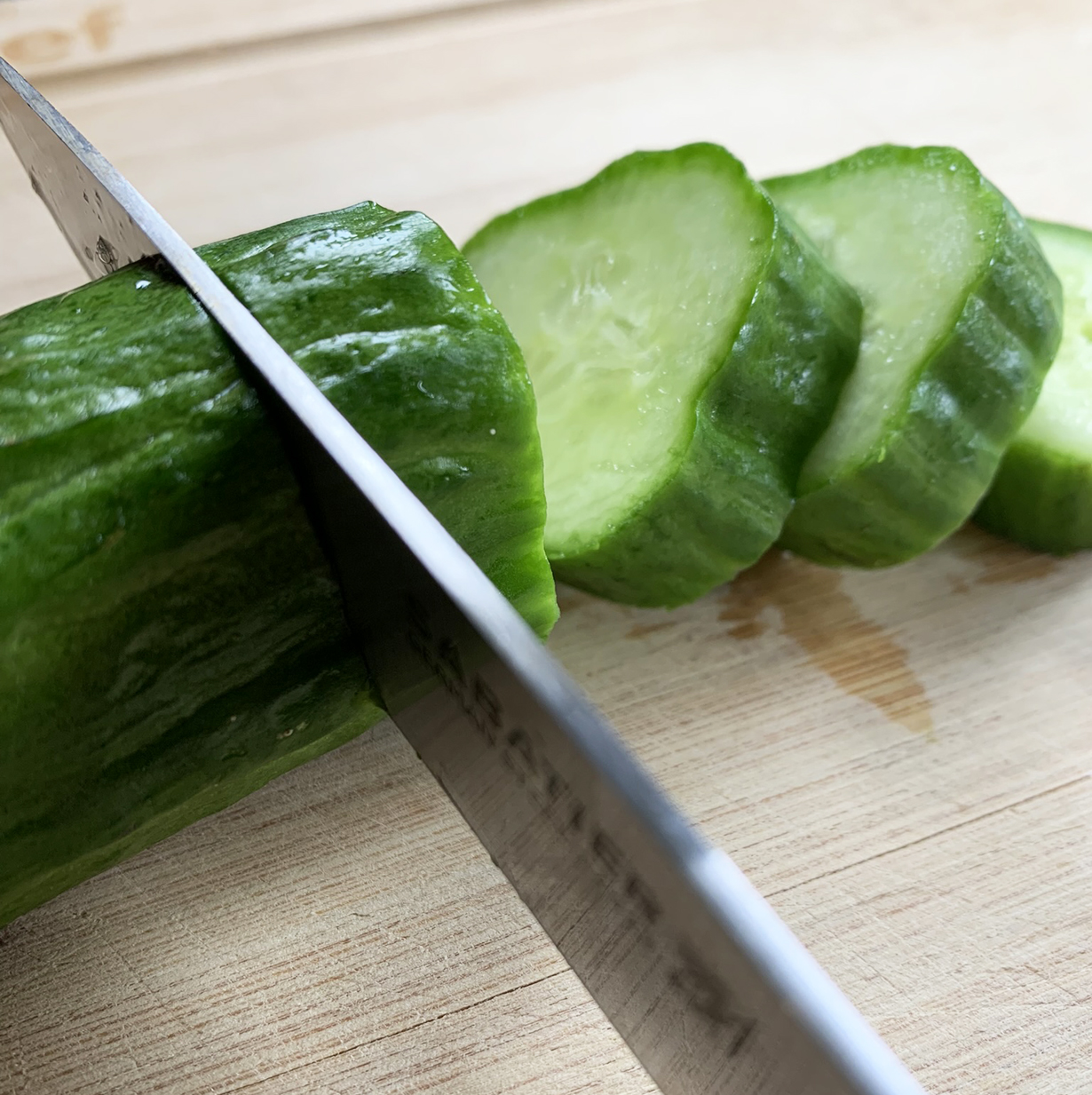 Wash cucumbers and slice them into 1/4 inch thick slices. Make a small hole in the center using a spoon or a melon baller. Make sure you leave a bit of a base that the cream cheese filling can rest in it.