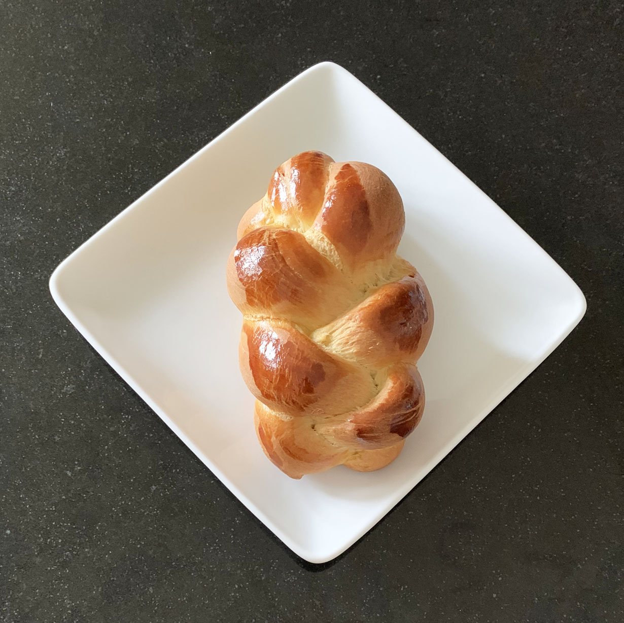 Brioche is a very decadent bread containing plenty of eggs, milk and butter. Light and fluffy, its buttery texture gives the illusion of pastry. Brioche makes an excellent sandwich bread or can be just as easily eaten with just a bit of jam. Brioche can be braided (as shown) or just make as a simple loaf that is sliced.