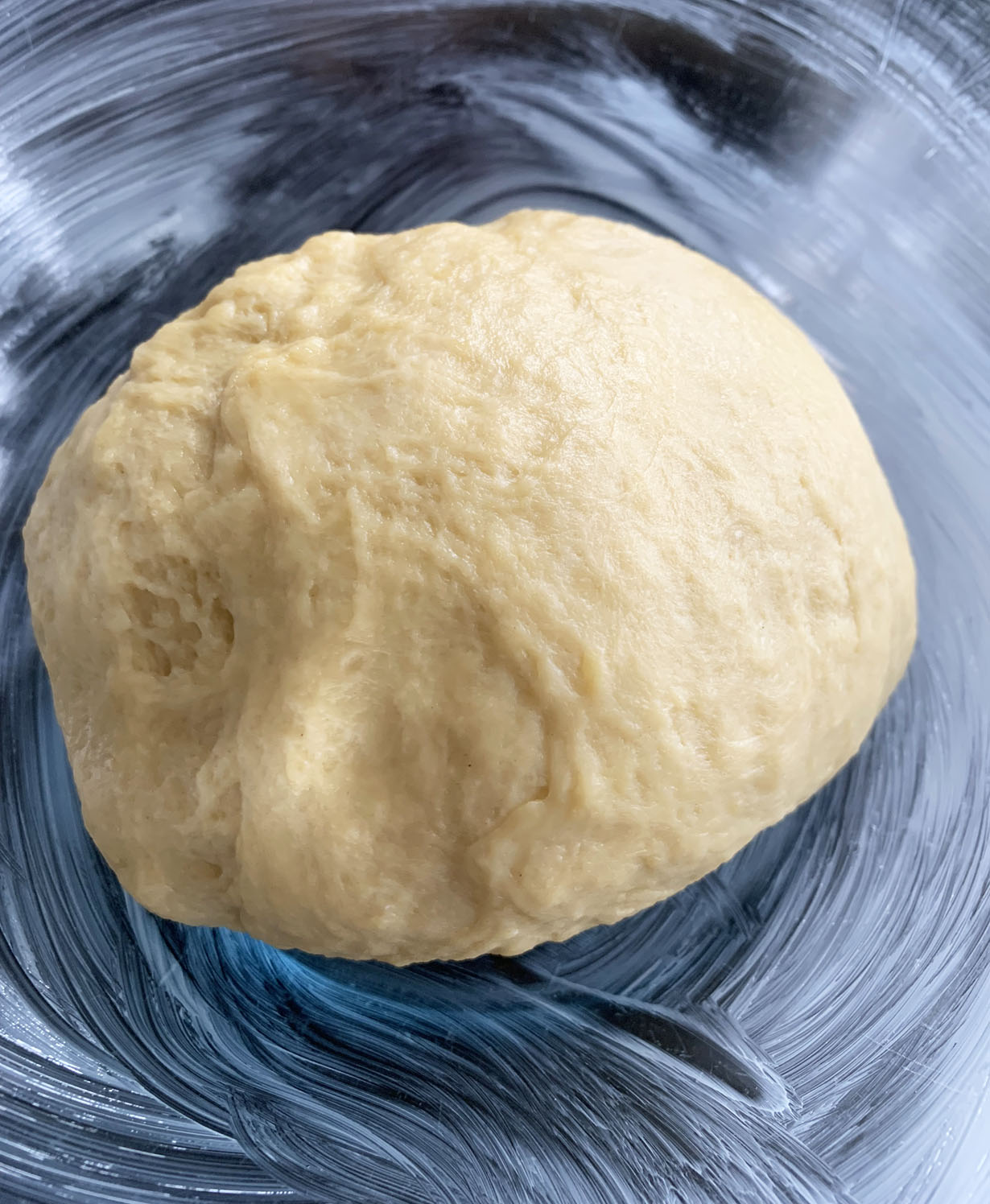 Mix the yeast and honey in a bowl and add the warmed milk. Allow the yeast to activate for 10 minutes. Sift the flour and salt into a bowl. In a separate mixing bowl, add the eggs, egg yolk, vanilla and sugar. Whisk together and add the flour 1 cup at a time. Use the dough hook attachment to mix and create a crumbly dough. Add the butter in increments followed by the yeast mixture. Knead in the mixing bowl until the dough comes together and can be lifted off the bottom of the bowl. The dough is very soft and tacky at this point, but should not stick to your fingers.