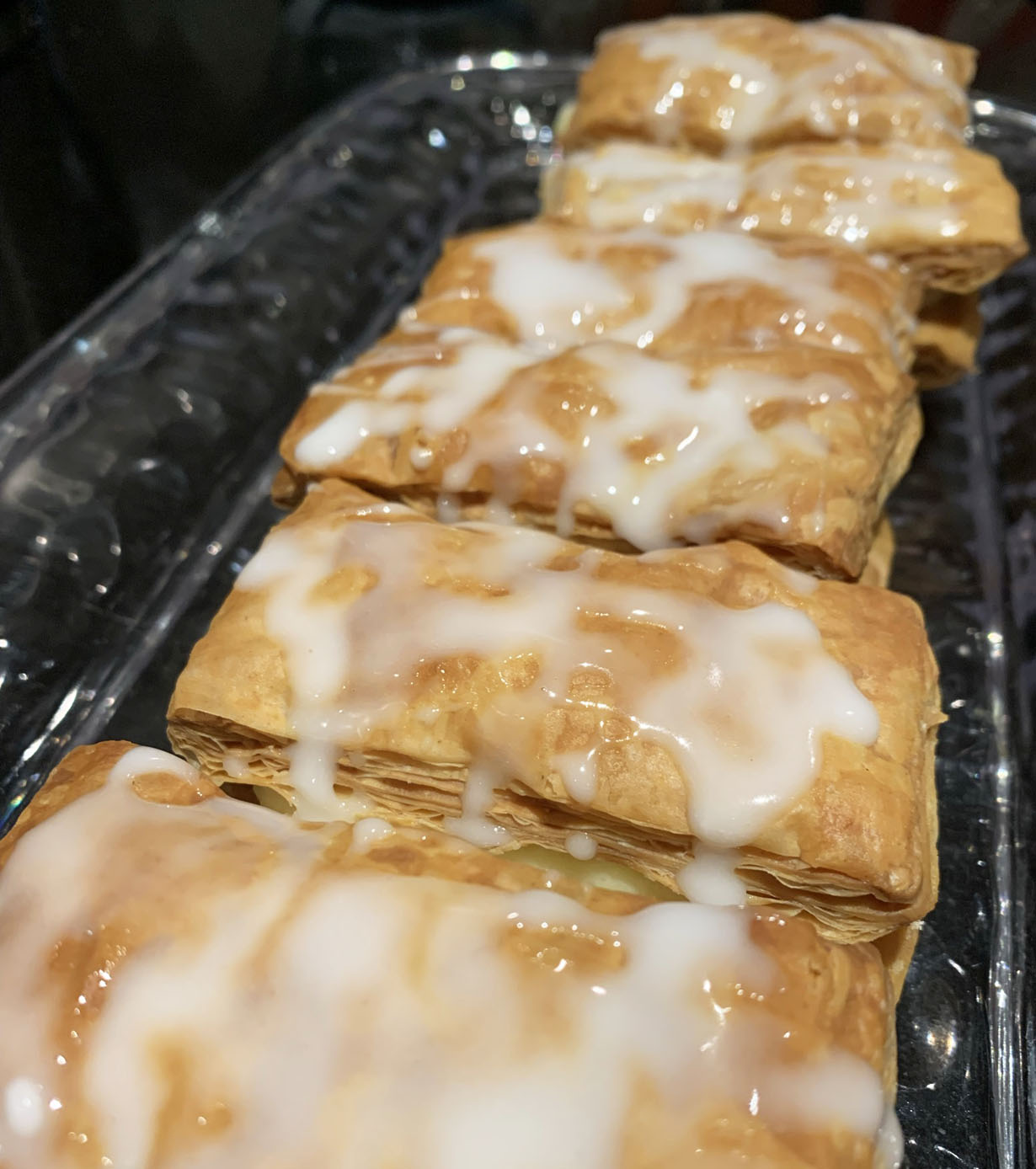 Traditional Neapolitan desserts feature a royal icing glaze with egg whites. This recipe uses a simple glaze that gives the Neapolitan a more rustic appearance. Each piece is pre-cut making it easier to prepare clean individual dessert portions. The pastry cream can be made ahead of time and assembly can easily be done the day you plan to serve these desserts.
