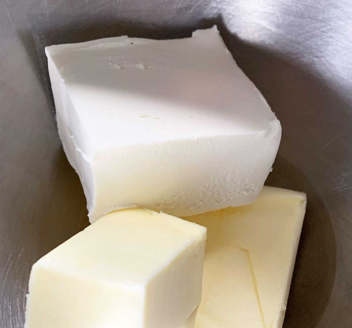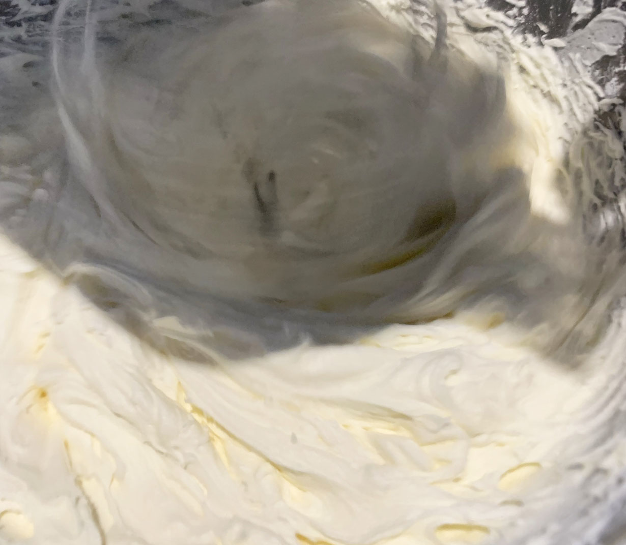 While the cake is cooling, prepare the icing by beating together the cream cheese and butter until doubled in size. Add the sugar, lemon juice, and cream.