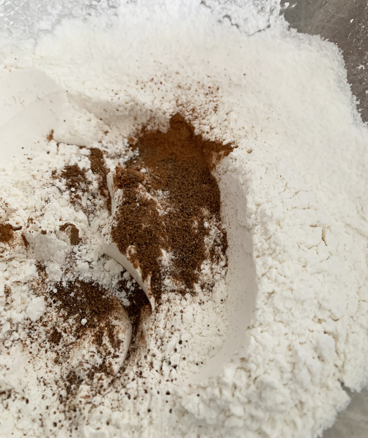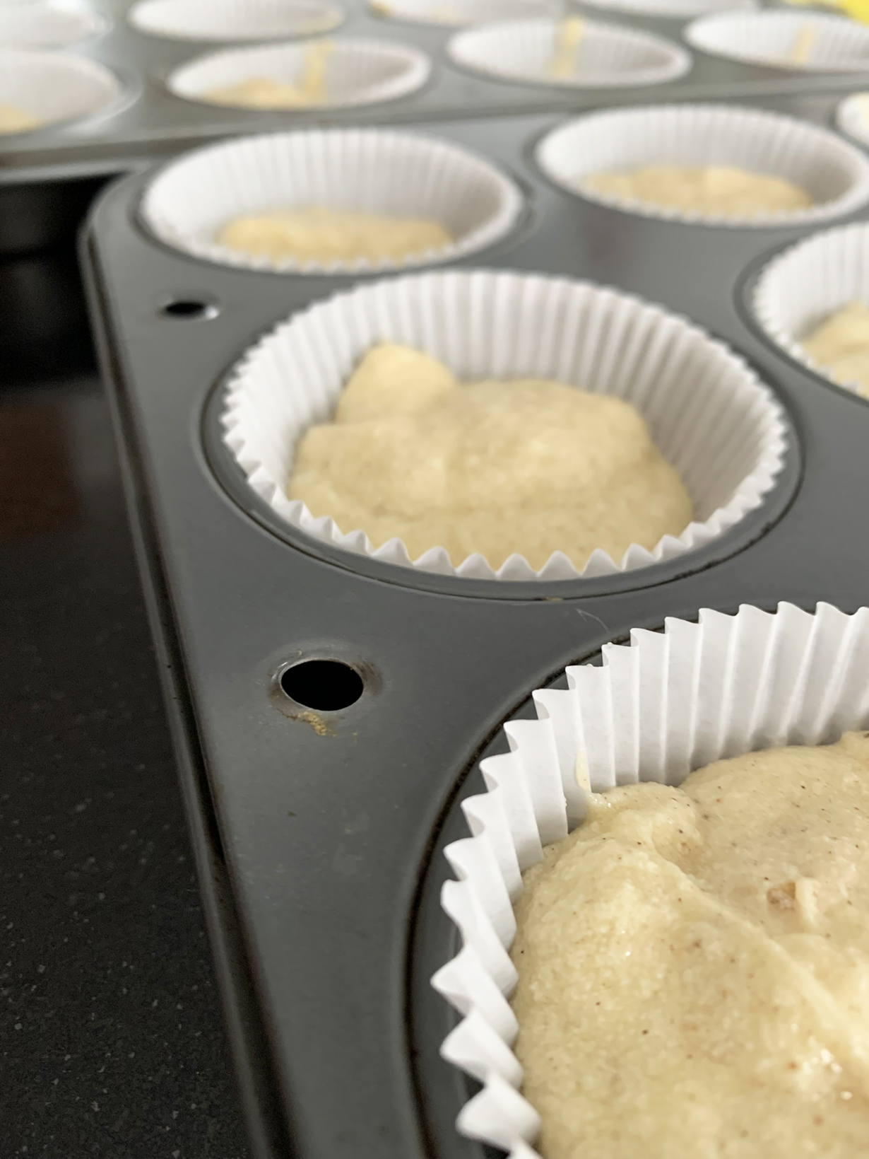 Preheat the oven to 350°F and line a muffin tin with paper liners. Sift the flour, cornstarch, baking powder, salt, nutmeg, and cinnamon into a bowl and set aside.