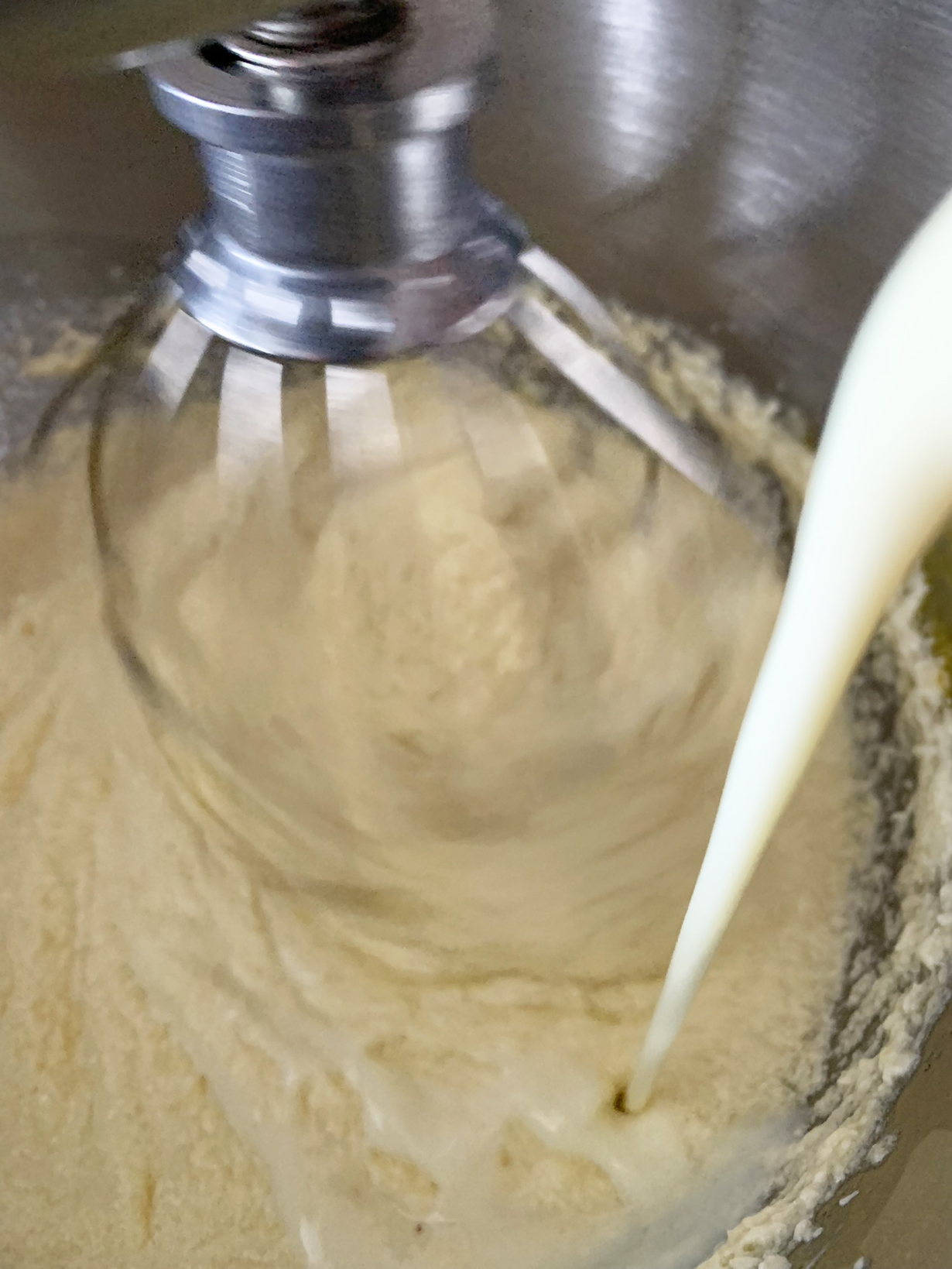 Separate the eggs. In a mixing bowl fitted with the whisk attachment, beat the egg whites on high until stiff peaks form. Slowly add in the sugar and beat for 10 minutes. Add the yolks one at a time, mixing until fully incorporated. While the eggs are beating, use a spatula to occasionally pull any batter down from the sides. Reduce the speed to low and add the vanilla extract and the butter. Slowly add in the eggnog. Once the mixture is fully blended, fold in the flour mixture by hand. Fill the muffin cups to 3/4 full and bake for 20 to 22 minutes, or until a toothpick inserted in the middle comes out clean. Cool on a wire rack for frosting.
