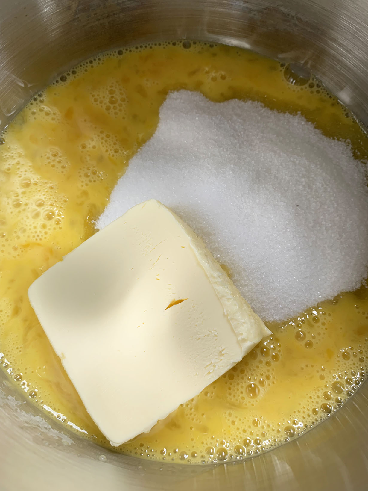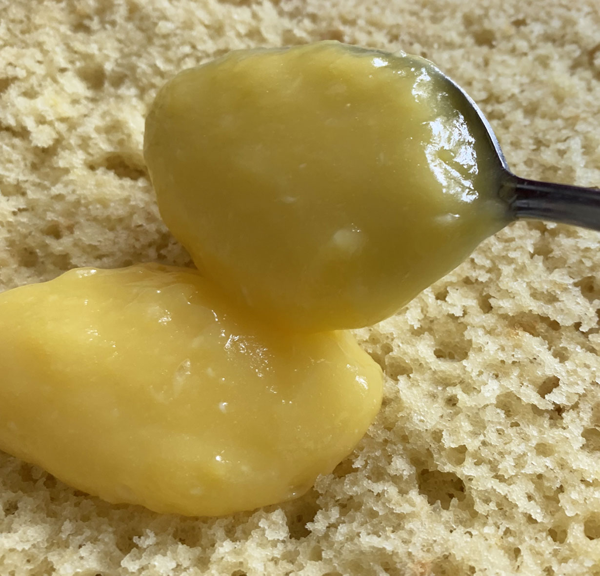 While the cake is cooling, prepare the lemon curd. Put the eggs, sugar, and butter into a small pot and stir over low heat until all the sugar has dissolved. Add the lemon rind and juice and, while constantly stirring, cook until the curd thickens. Place the curd in a bowl and cover with plastic wrap resting right on the top of the curd. Cool in the refrigerator for at least 1/2 hour.