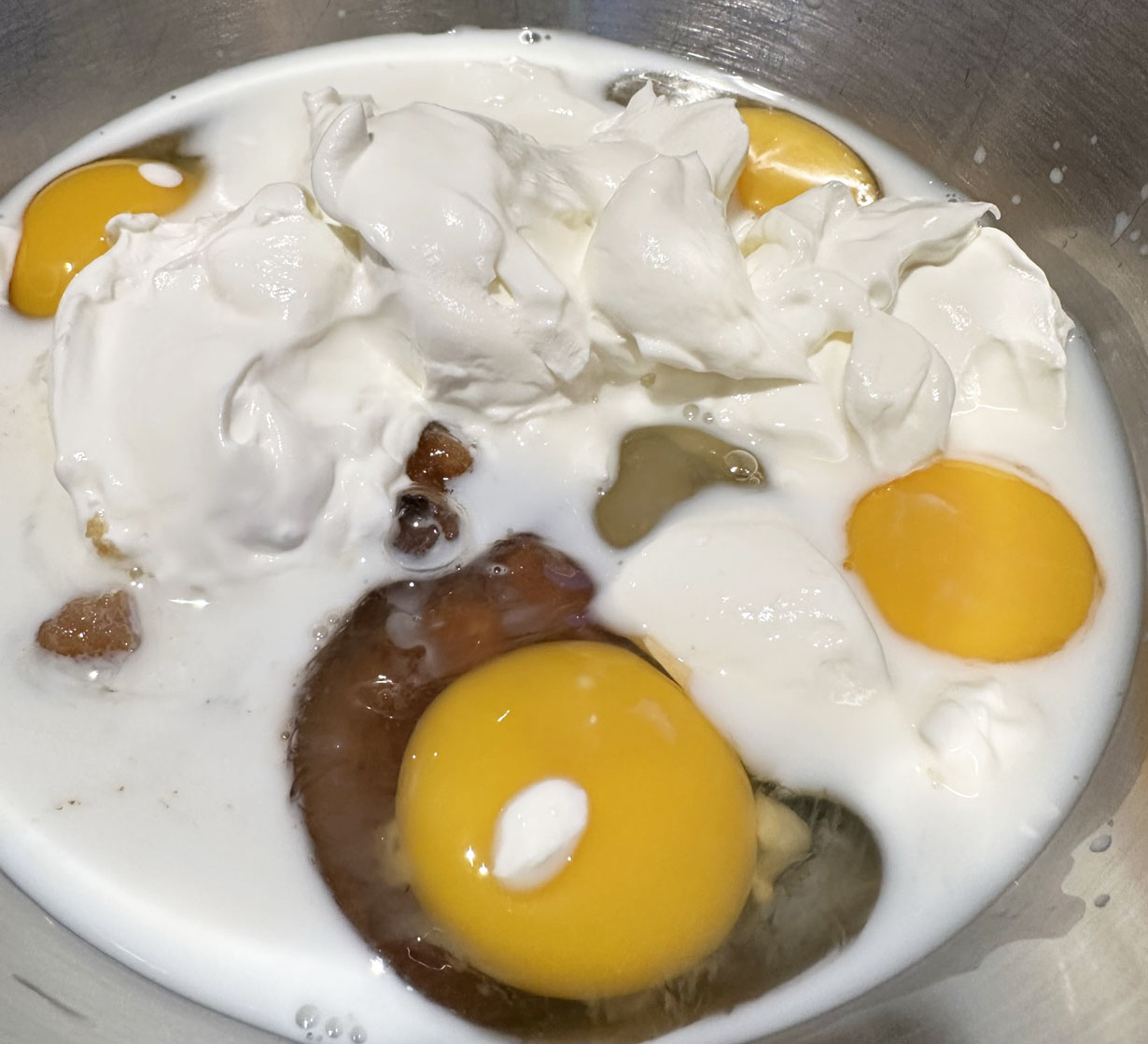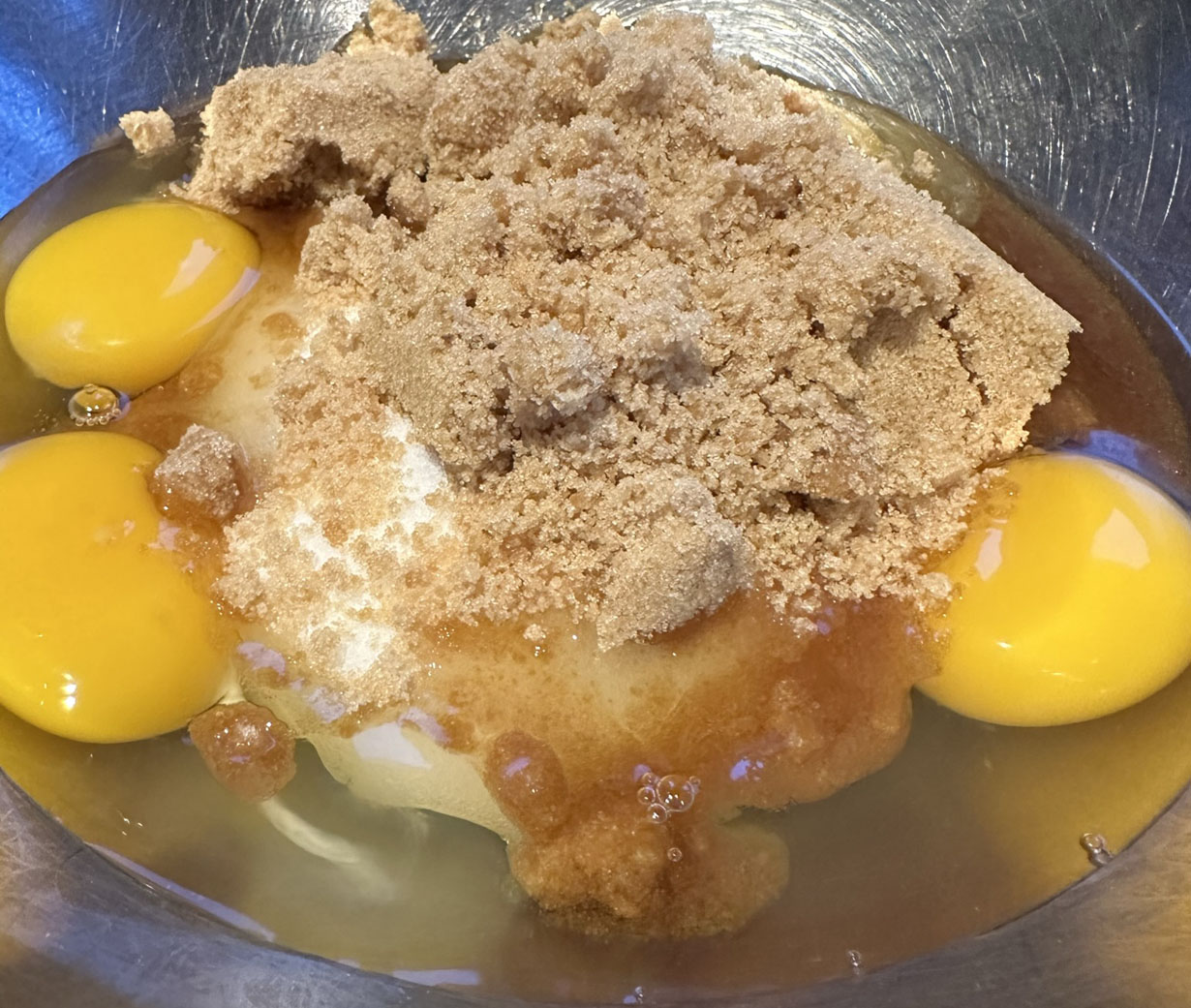 Lightly beat (by hand) the eggs, sour cream, butter, and sugars. Add the egg mixture to the well created in the dry ingredients. Stir together until just moistened and fill each muffin cup 3/4 full. Bake for 25 to 30 minutes or until a toothpick inserted in the batter comes out clean. Let the cupcakes cool.