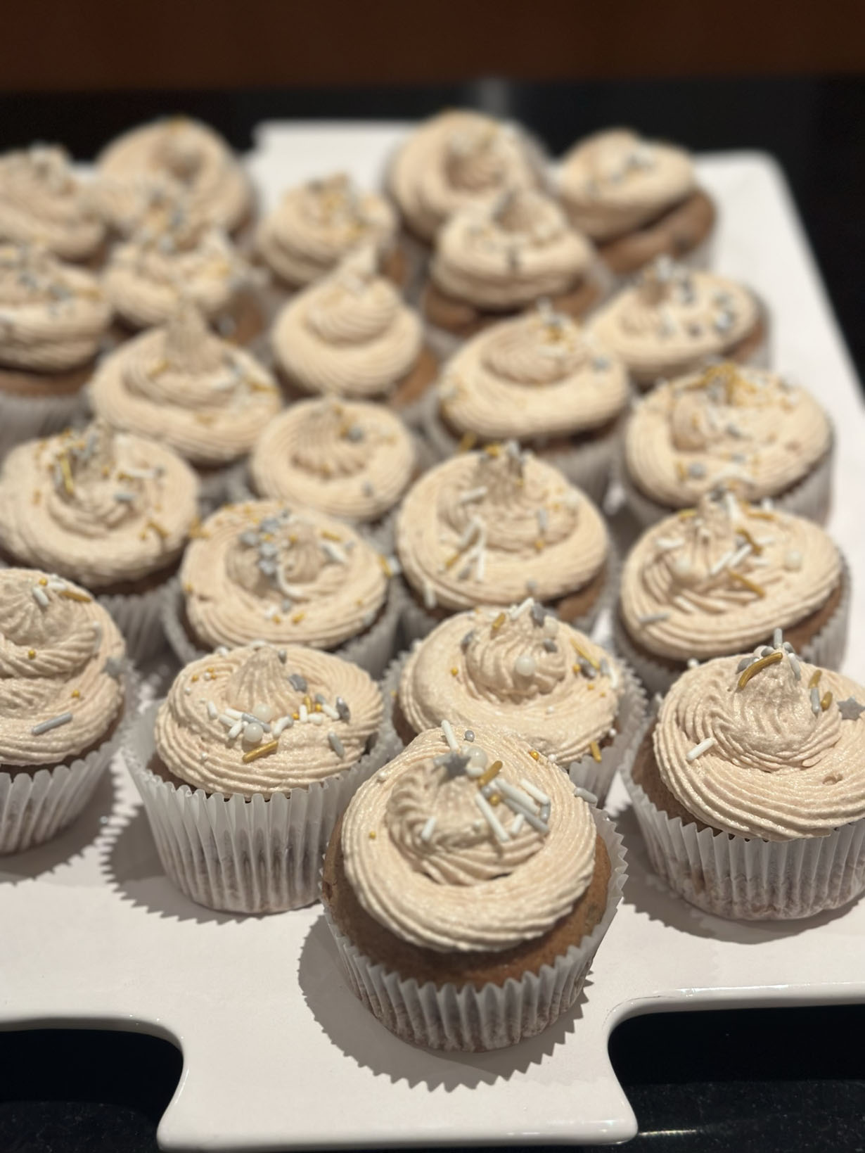 Frost the cupcakes with a rosette swirl pattern and top with sprinkles or shaved chocolate.