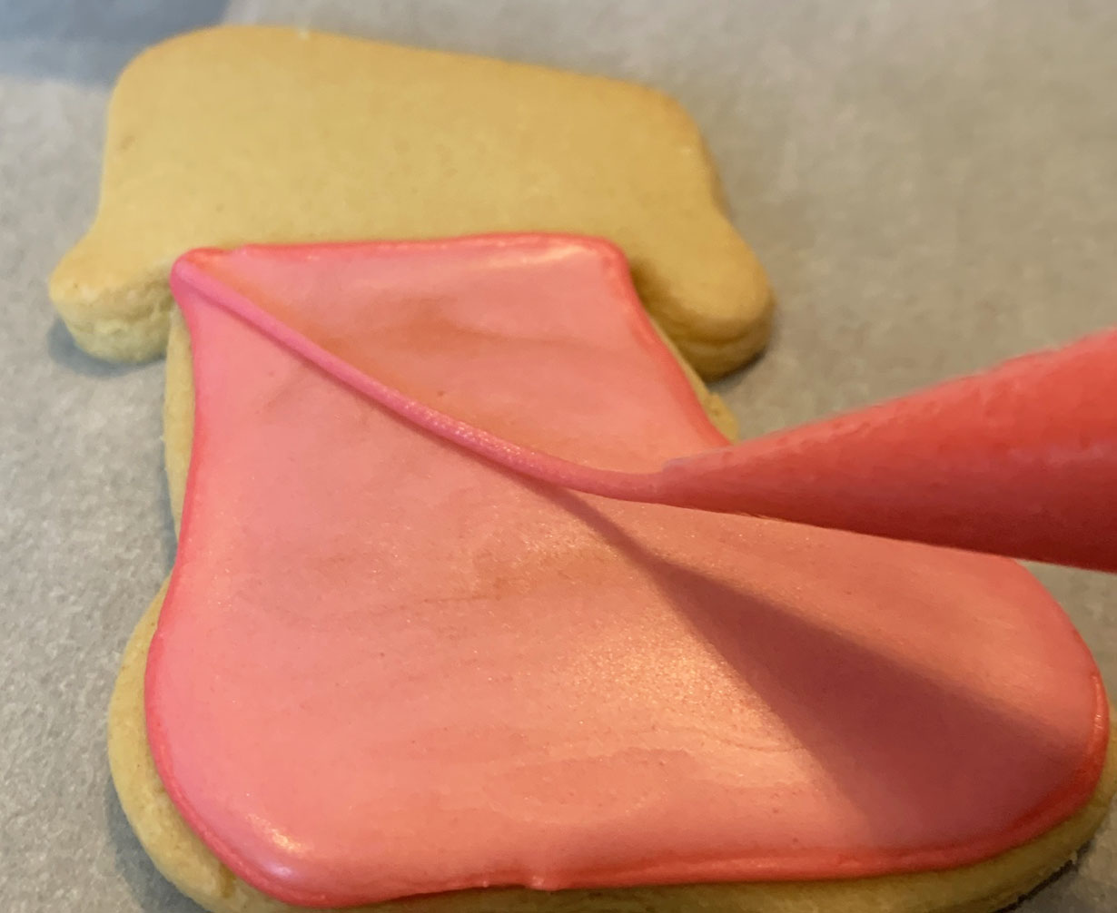 Icing your cookies is a full-day event (especially with little ones). Plan ahead and have all your toppings handy and all your icing colored in prepared plastic pastry bags. Traditional royal icing is often used to decorate sugar cookies. You will need to prepare two consistencies – one for piping and decoration and one for flooding (filling the cookie). The amount of frosting you will need will depend on the number of cookies you make. I have included some classic recipes for cookie frostings below.