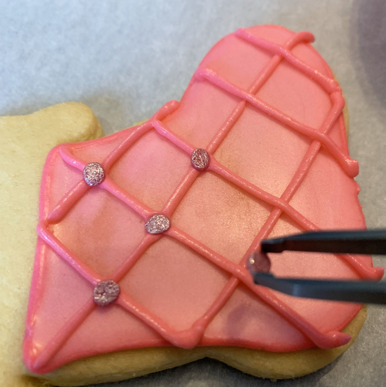 When frosting, use your medium consistency to create a border. Fill the border with your filling consistency and use a flat toothpick to even out if necessary. Once the surface is covered, shake a bit to remove any air bubbles. Allow hardening before adding additional piping.