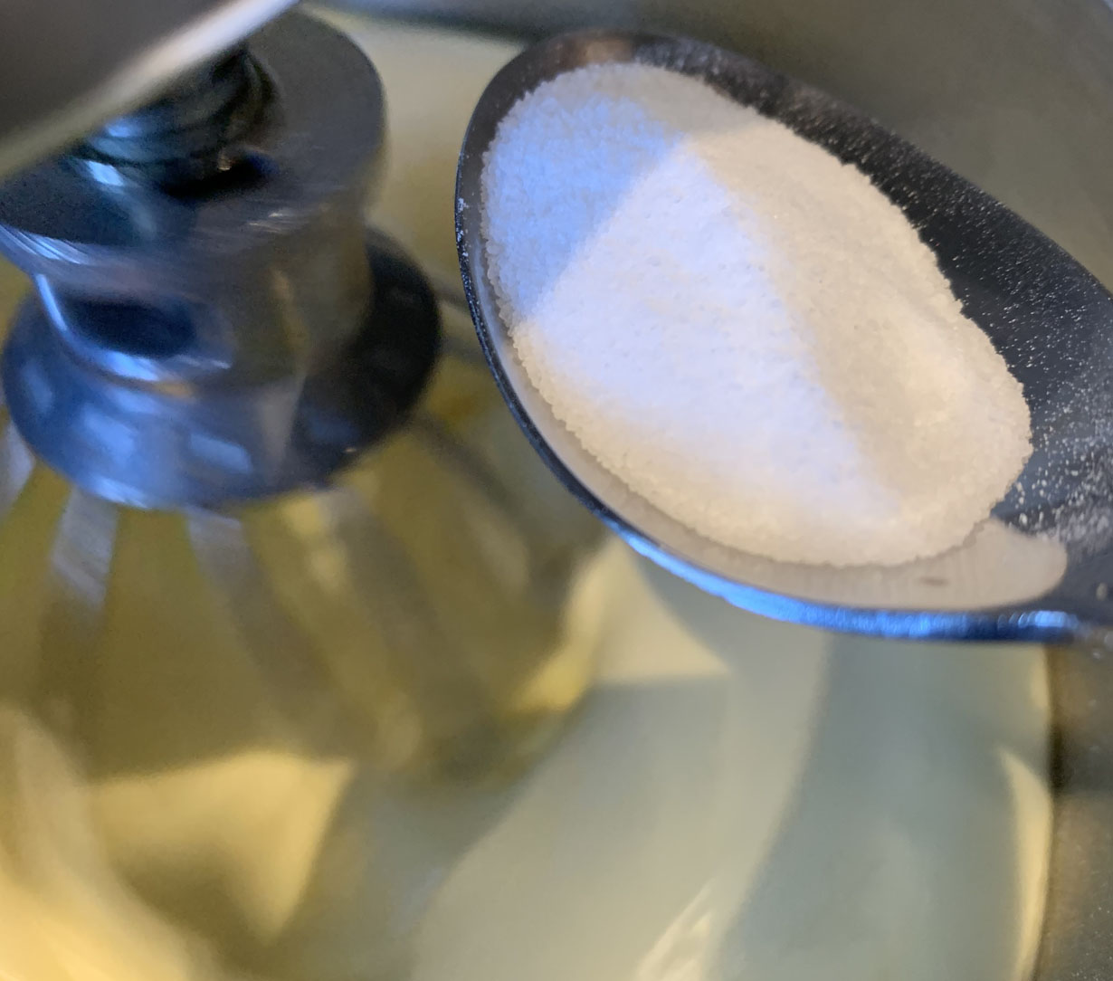 Beat the egg whites until foamy. Slowly add in the sugar and continue to beat until fully incorporated. Add the egg yolks and beat until ribbon stage is reached. Add the ammonia and beat until incorporated. Cover with a cloth and let the eggs rest for 2 hours, beating them for a few seconds every 15 minutes.