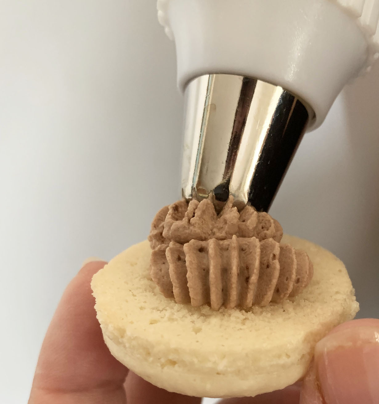 Preheat your oven to 300°F and bake for 17 minutes. The feet at the side of the macaron should rise up during baking. Allow to rest in the baking pan for 5 minutes before transferring to a wire rack to completely cool.