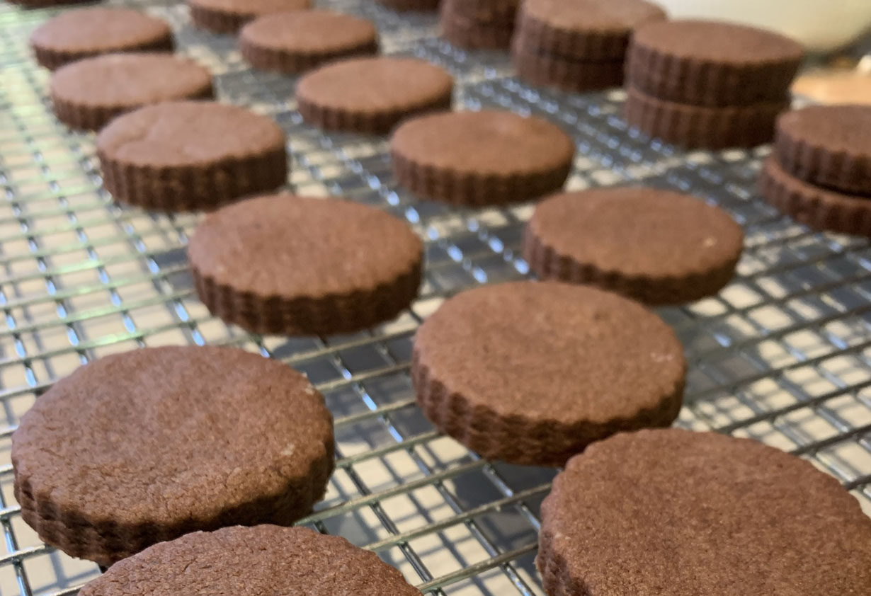 This cookie is for adults only! Filled with whisky buttercream, they are sinfully delicious. The dough is rolled out and can be cut into any shape. The whisky adds a woody flavor that blends well with the spices and the chocolate.