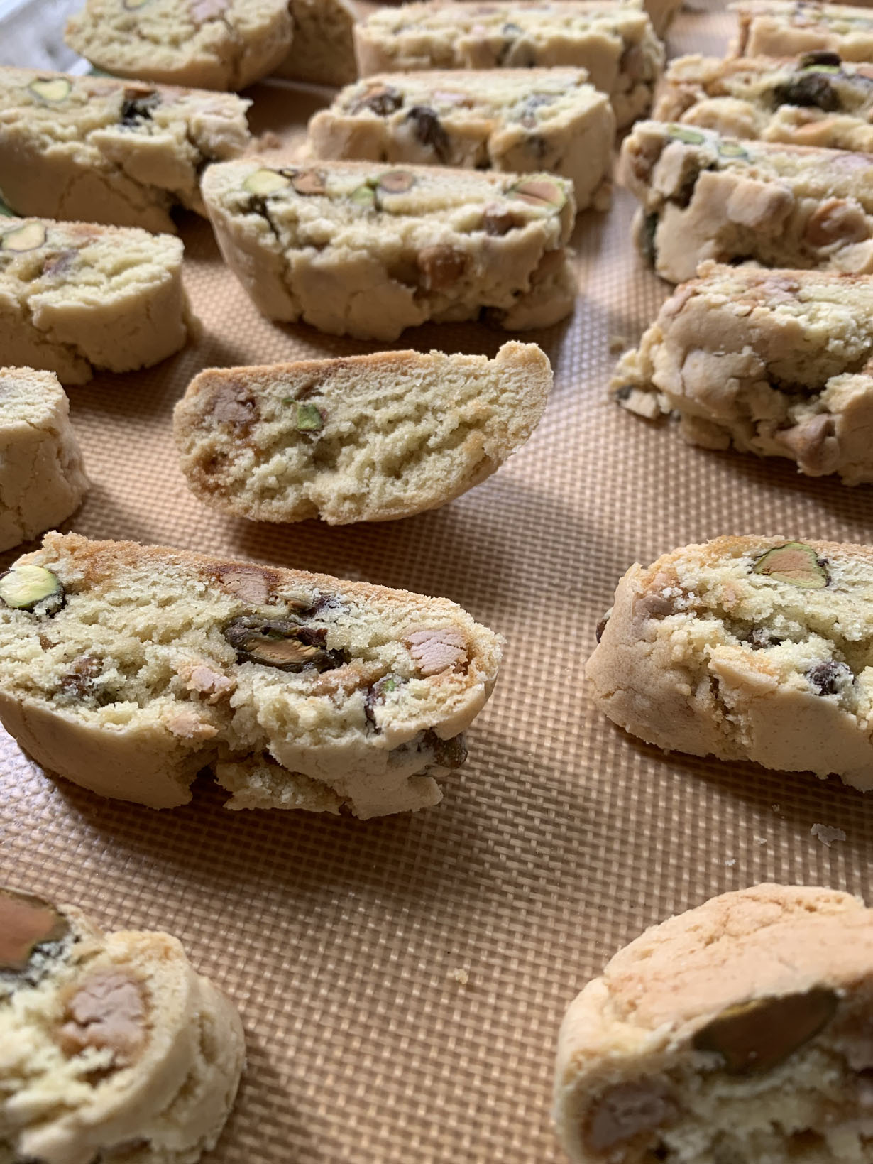 These twice-baked biscotti combine the best of both worlds: salt and sweet. They are softer than traditional biscotti, but are just as good with coffee. The pistachio nuts combined with the salty caramel goodness make a perfect bite each time.
