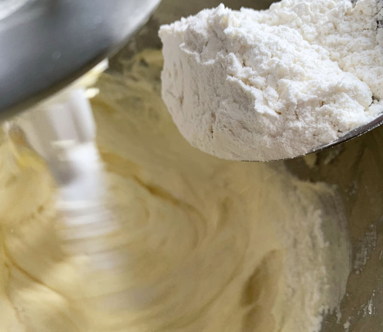 Preheat your oven to 375°F and line your cookie sheet with parchment paper or a silicone mat. Sift the flour in a bowl and set it aside. In a stand mixer fitted with a paddle attachment, beat the butter with the sugar on high speed until pale and fluffy (about 10 minutes). Reduce to medium speed and add the egg, beating for an additional 1 to 2 minutes. Add the flour slowly into the mixture, beating until the flour is combined. (You can fold in the flour by hand and then beat with the mixer until it combines.