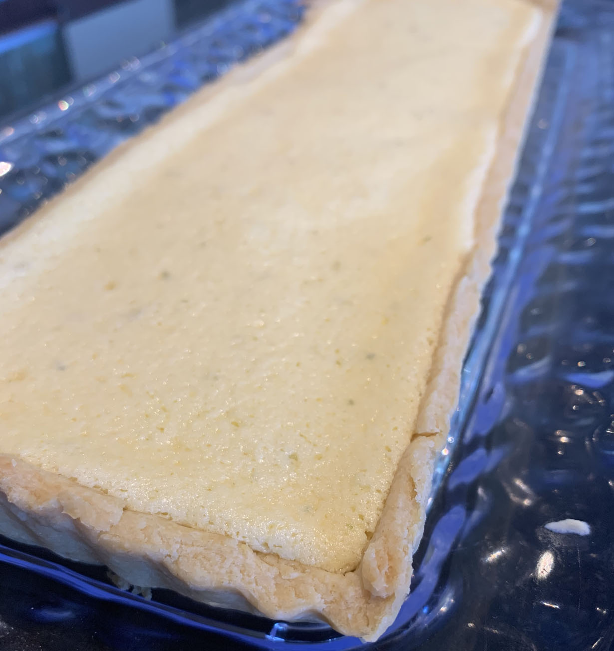 Lower the oven to 325°F. Pour the filling into the tart shell as close to the top as possible. Bake for 25 minutes and it let rest in the pan until cool. Once cool, place on the serving tray for decoration.