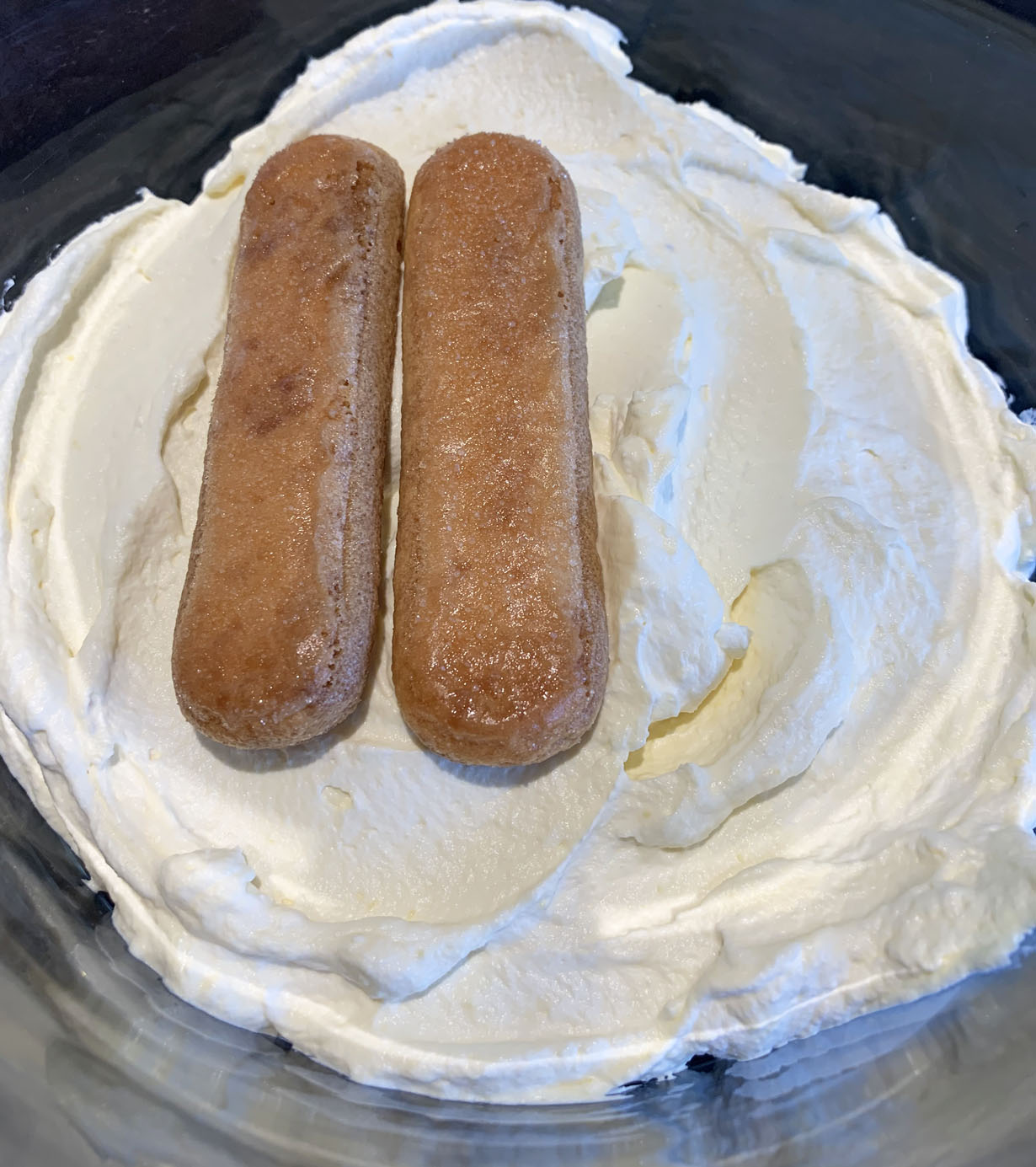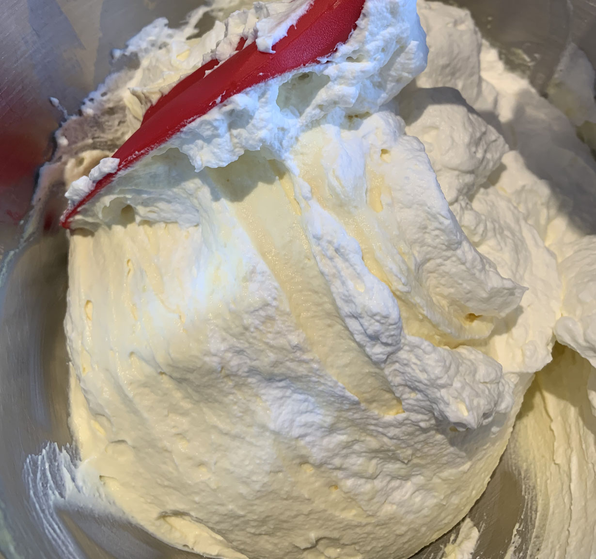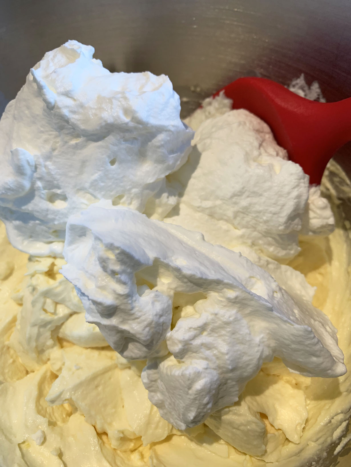 Beat the whipping cream until it forms stiff peaks and fold into the mascarpone mix.