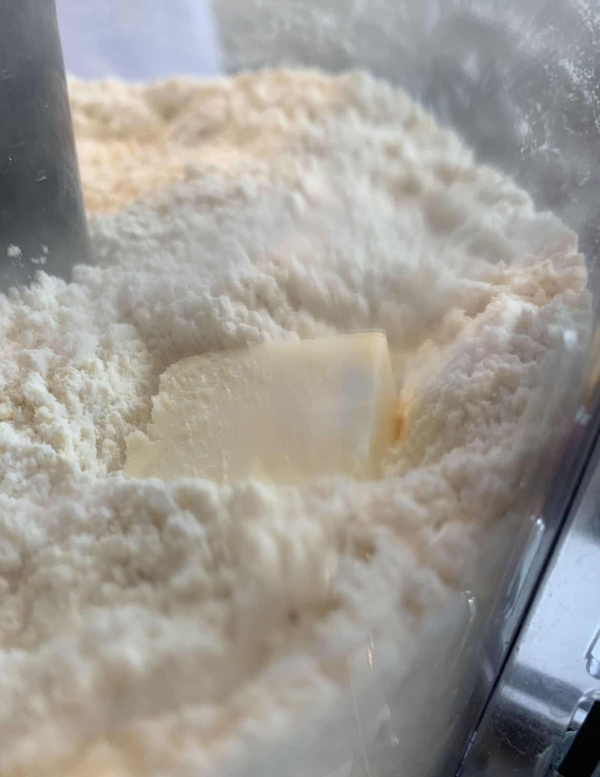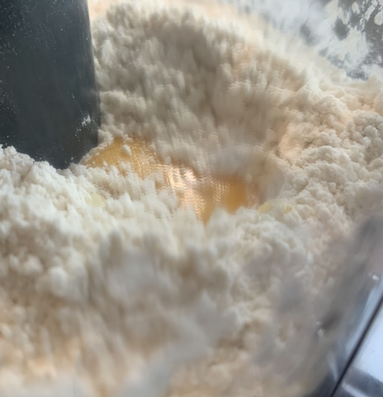 Preheat the oven to 400°F. ift the flour and place in a food processor along with the sugar and salt. Pulse two to three times to combine. Continue to pulse and add the butter followed by the egg. Add the vanilla and pulse until the cookie dough combines and gathers together. Do not overmix the dough.