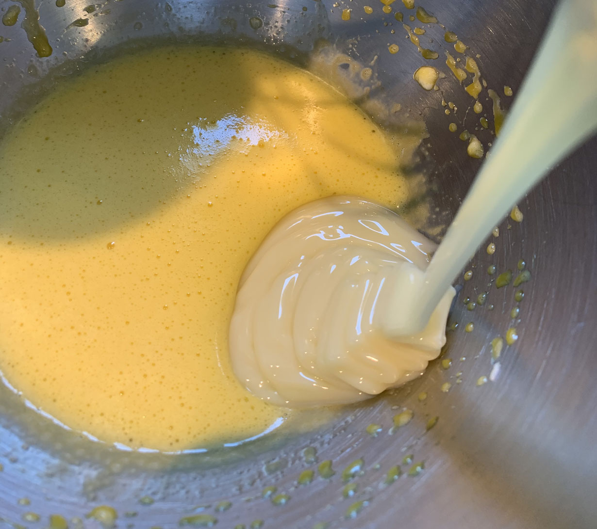 While the pastry is baking, prepare the filling. Beat the egg whites with the sugar until stiff peaks form. Set aside. Beat the egg yolks until they lighten and, while beating, add in the condensed milk. Add the lime rind and juice and mix thoroughly. Fold the egg whites and yolk mixture together until combined and smooth.