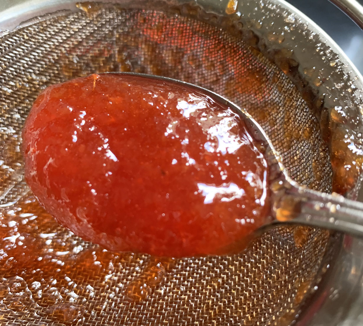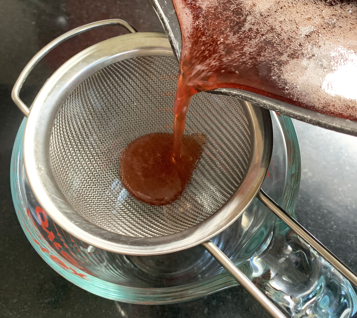 Once thickened, pass through a sieve a second time to remove any pulp that may have been in the syrup. Keep refrigerated in a tightly sealed bottle for up to 2 months. Makes 2 cups syrup.