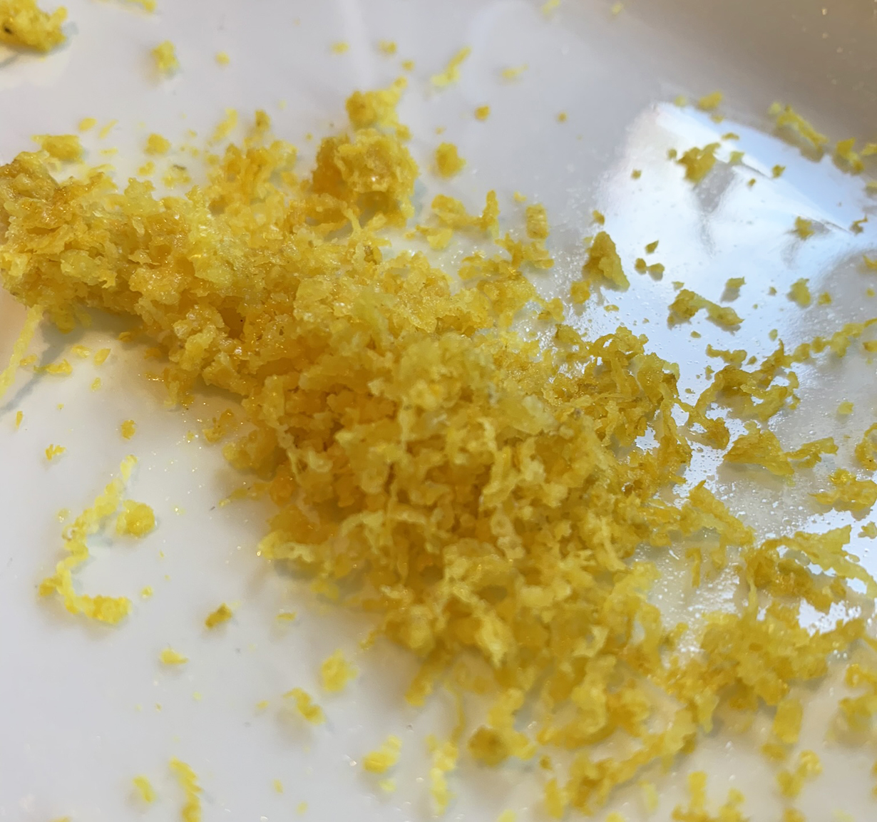 In a mixing bowl fitted with a paddle attachment, whisk the egg whites until fluffy. Add the yolks one at a time and continue whisking until fully blended. Slowly pour the syrup into the eggs while beating. Add the lemon rind and butter and mix well. Stir in the semolina. Pour the batter into a prepared pan. Bake until golden brown on top, approximately 40 minutes. Cut into diamond-shaped pieces while hot. Cool before serving.