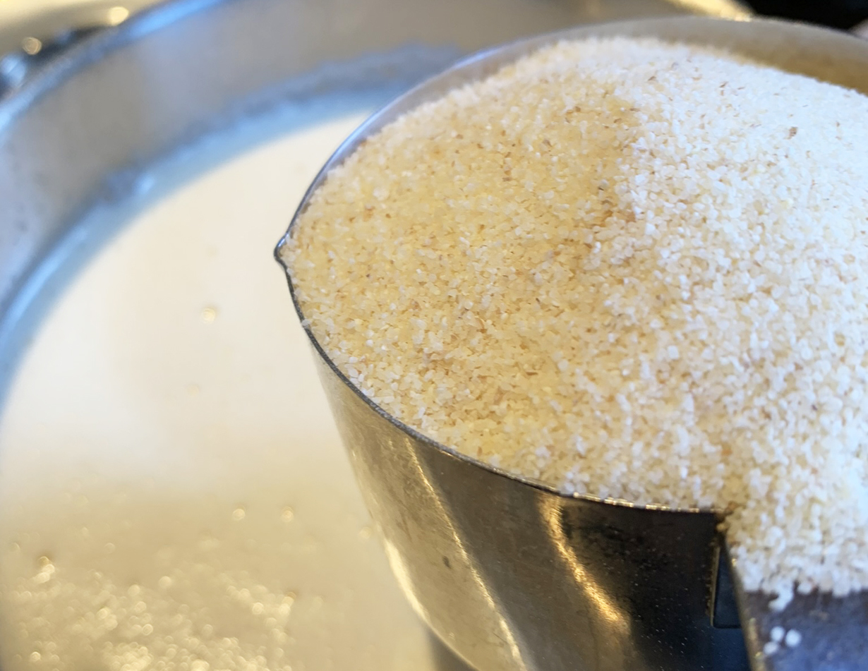 I came across this recipe by mistake. I was looking through my mother-in-law’s old recipe cards and found this interesting take on a Greek dessert. It is a cross between Halva and Ravani with the syrup baked right into the dessert. It is super sweet, so only make it when you plan to share it with a number of people.
