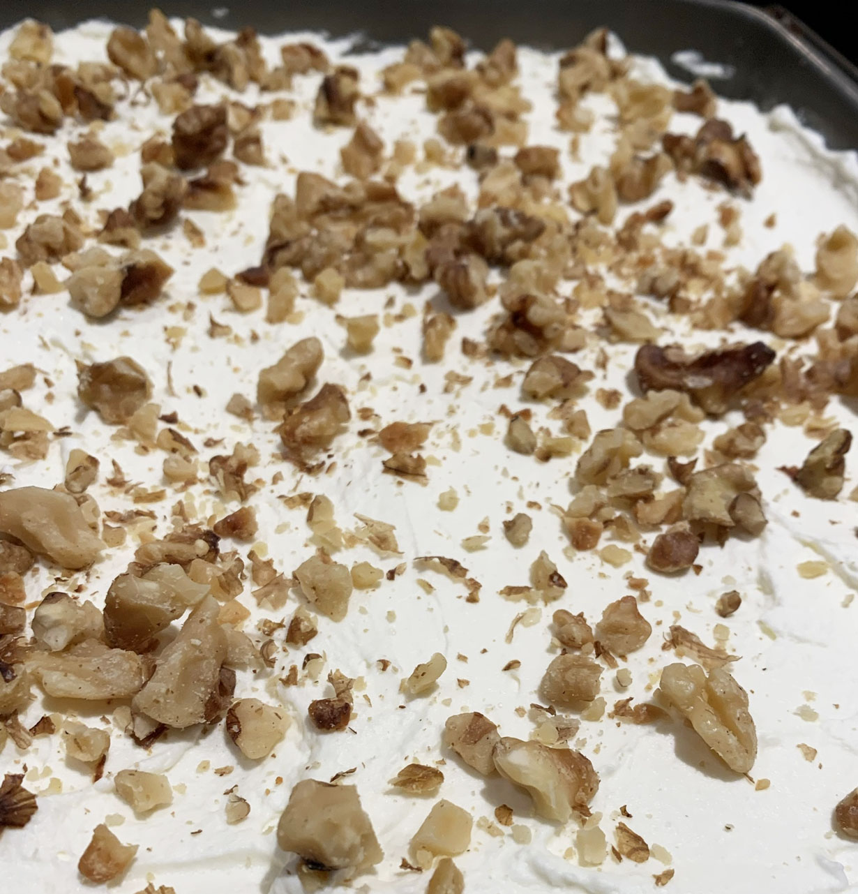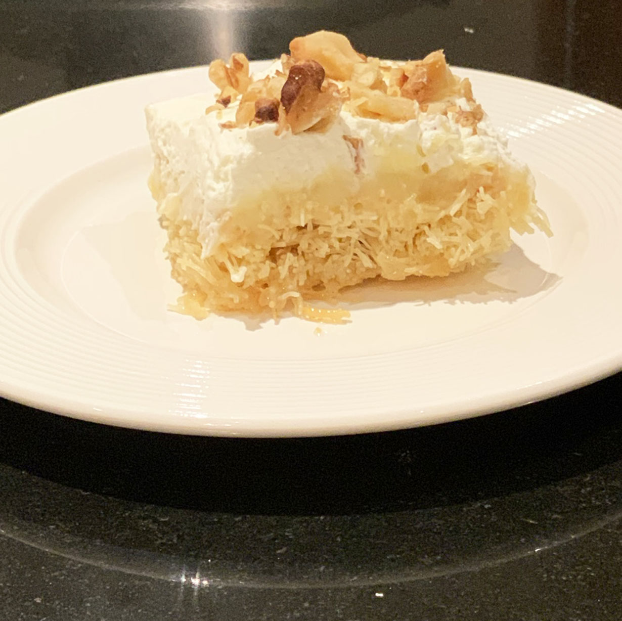 A rich and creamy Greek dessert made from layers of shredded filo pastry, rich custard and a whipped topping. This dessert takes a bit of time (and quite a few pots) but it is worth it in the end. Topped with roasted walnuts or pistachios, it makes an impressive dessert for large family get togethers.