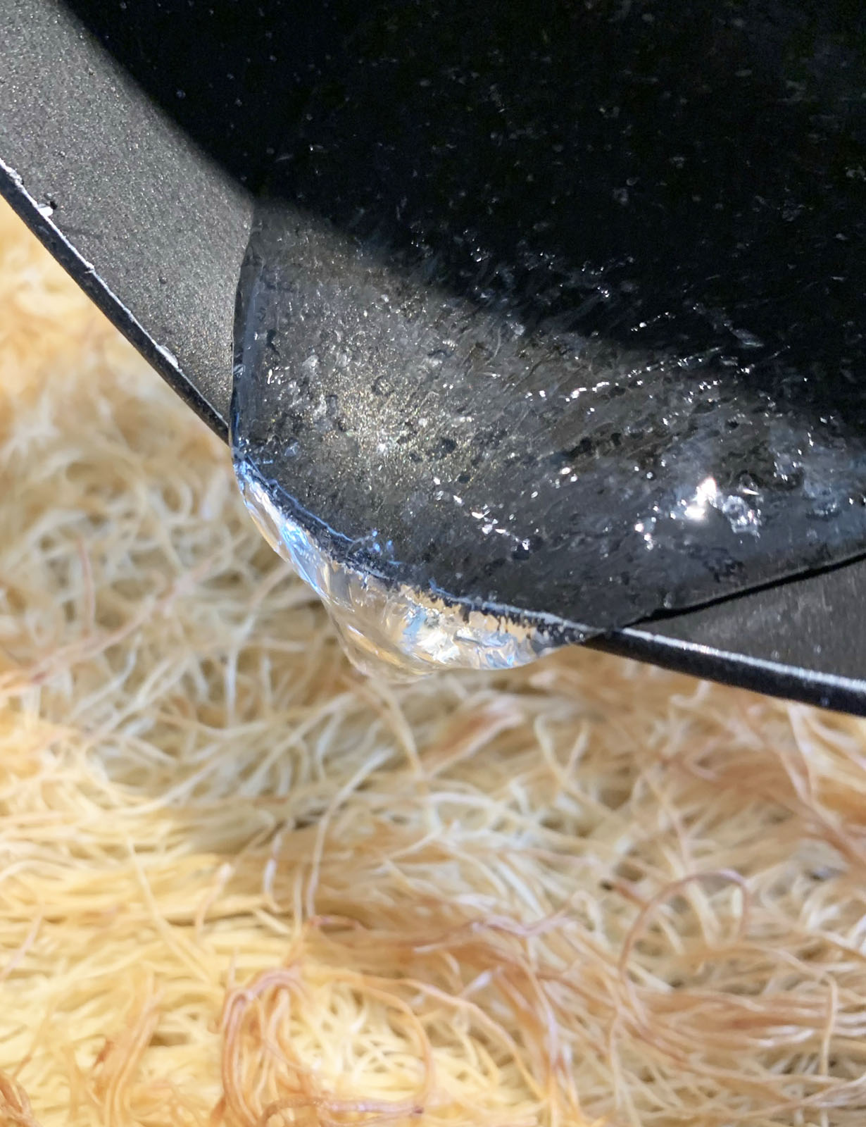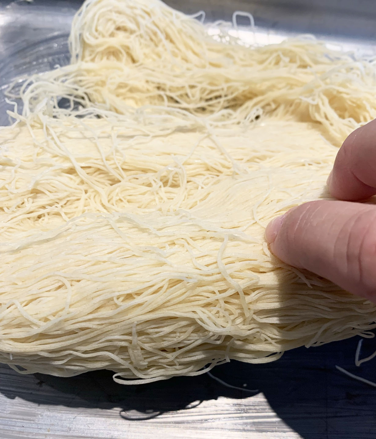 While the pastry is cooking, make the syrup by heating the water and sugar to a syrup consistency. Pour the syrup over the cooled Kadaifi pastry.