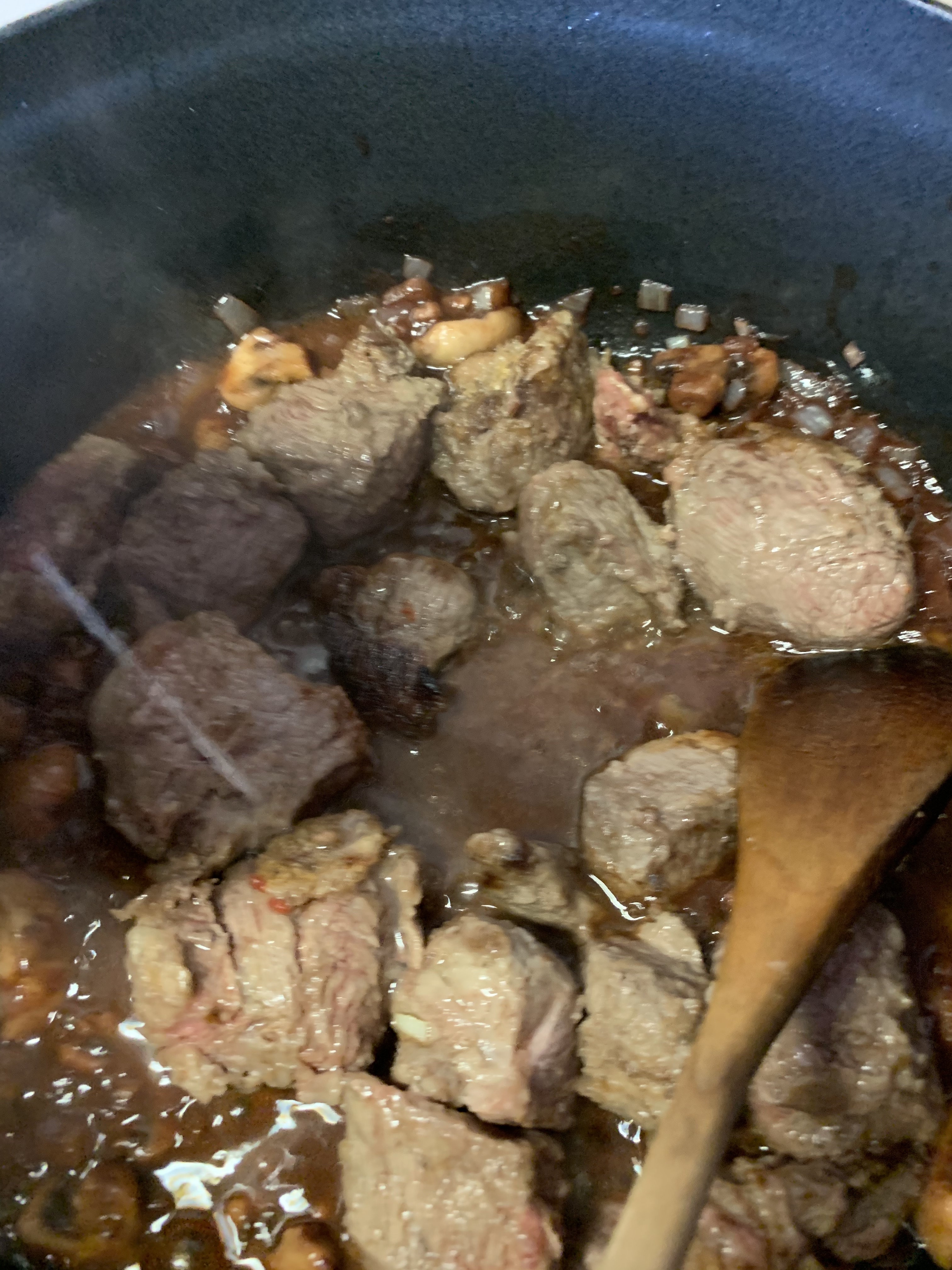 Beef stroganoff is a Russian dish that has been adopted world-wide. Quite easy to make, it is packed full of flavor. The addition of sour cream makes a creamy gravy-like sauce that works well with noodles or French fries. Use either stewing beef or tenderloin for best results.