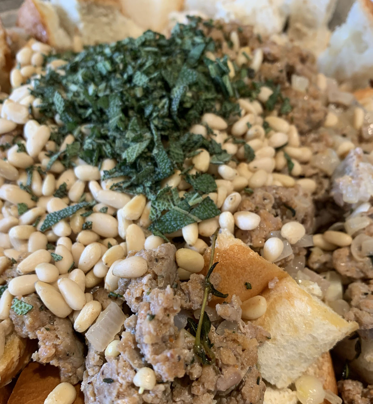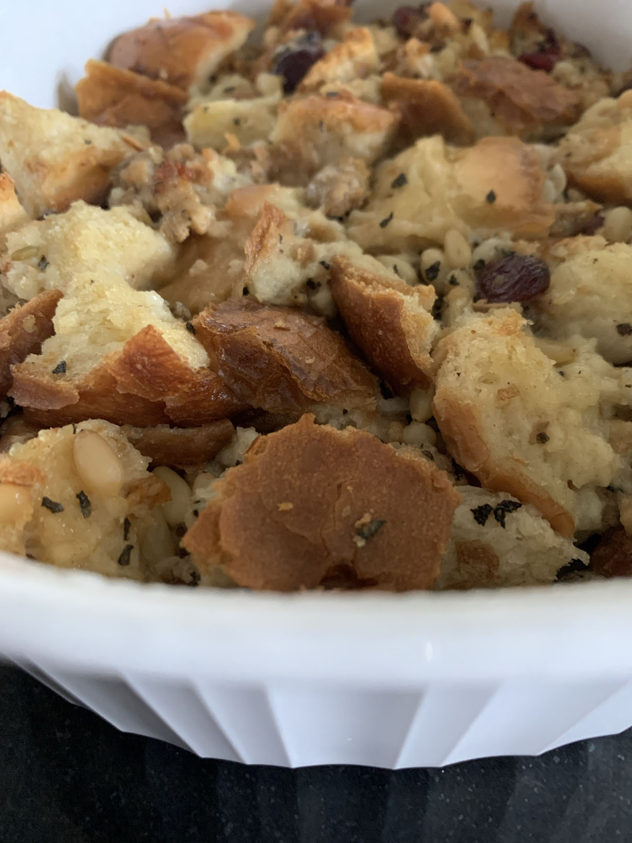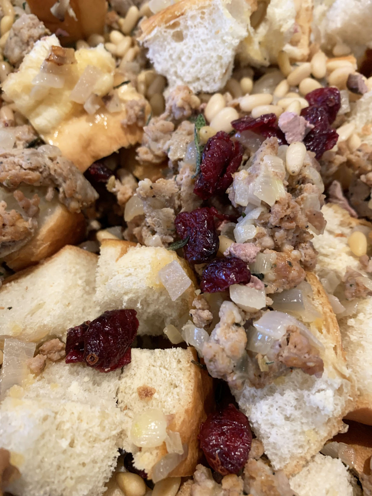 Bread stuffing is the most versatile type of stuffing you can make. You can add pretty much any seasonings, nuts and fruits to create a flavor that is uniquely your own. The addition of mild Italian sausage and pine nuts makes this stuffing truly exceptional.