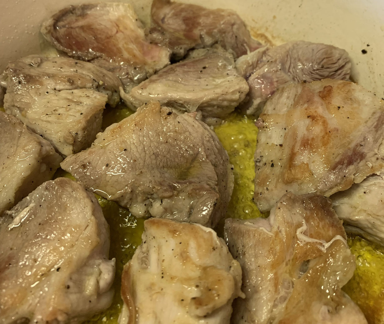 The first time I tried this dish was at my mother-in-law’s house. She would fry and then boil the pork pieces and then add a generous amount of lemon. What she made was a juicy and tender piece of meat with a wonderful intense flavor achieved with only a few simple ingredients. She normally served this with french fries drenched in the delicious sauce, but rice would work just as well.