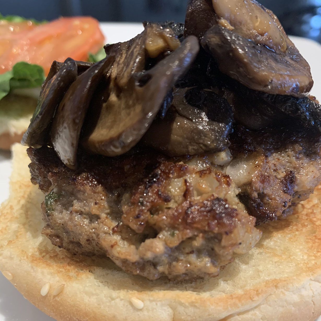 Hamburgers are one of North America’s favorite meals and are made with a variety of meats. This version includes caramelized mushrooms on top served on a toasted sesame seed bun. The way you decide to dress them is entirely up to your imagination.