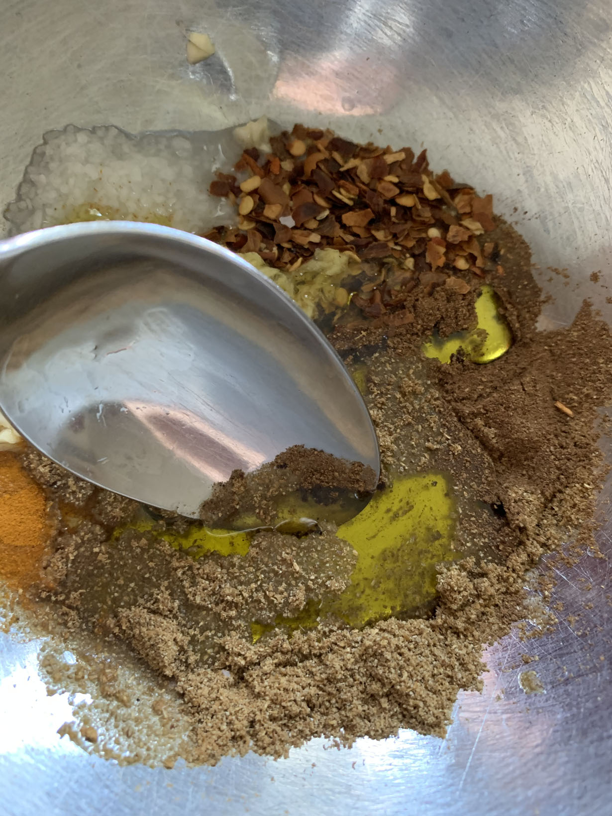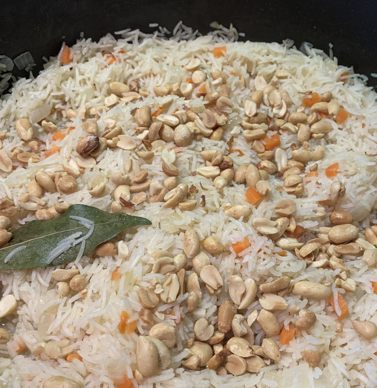 To prepare the rice, rinse the rice under cold water until it comes through clear. Heat the butter in a deep pan and add the onion and carrot. Cook for 3 minutes and then add the garlic and spices, cooking for an additional 2 minutes. Add the rice and cook for one minute, stirring to ensure the spices get evenly distributed. Add the stock and salt and cover the pan. Simmer on low heat for approximately 10 minutes and, after 10 minutes, check to see if the liquid has been absorbed and the rice is almost cooked. If needed, add a bit more stock. Remove the rice from the heat, stir in the nuts, and let the pan sit covered for about 5 minutes. Covered, the rice will continue to cook in the steam and absorb any remaining liquid, so it is important that you do not fully cook it while on the stove top.