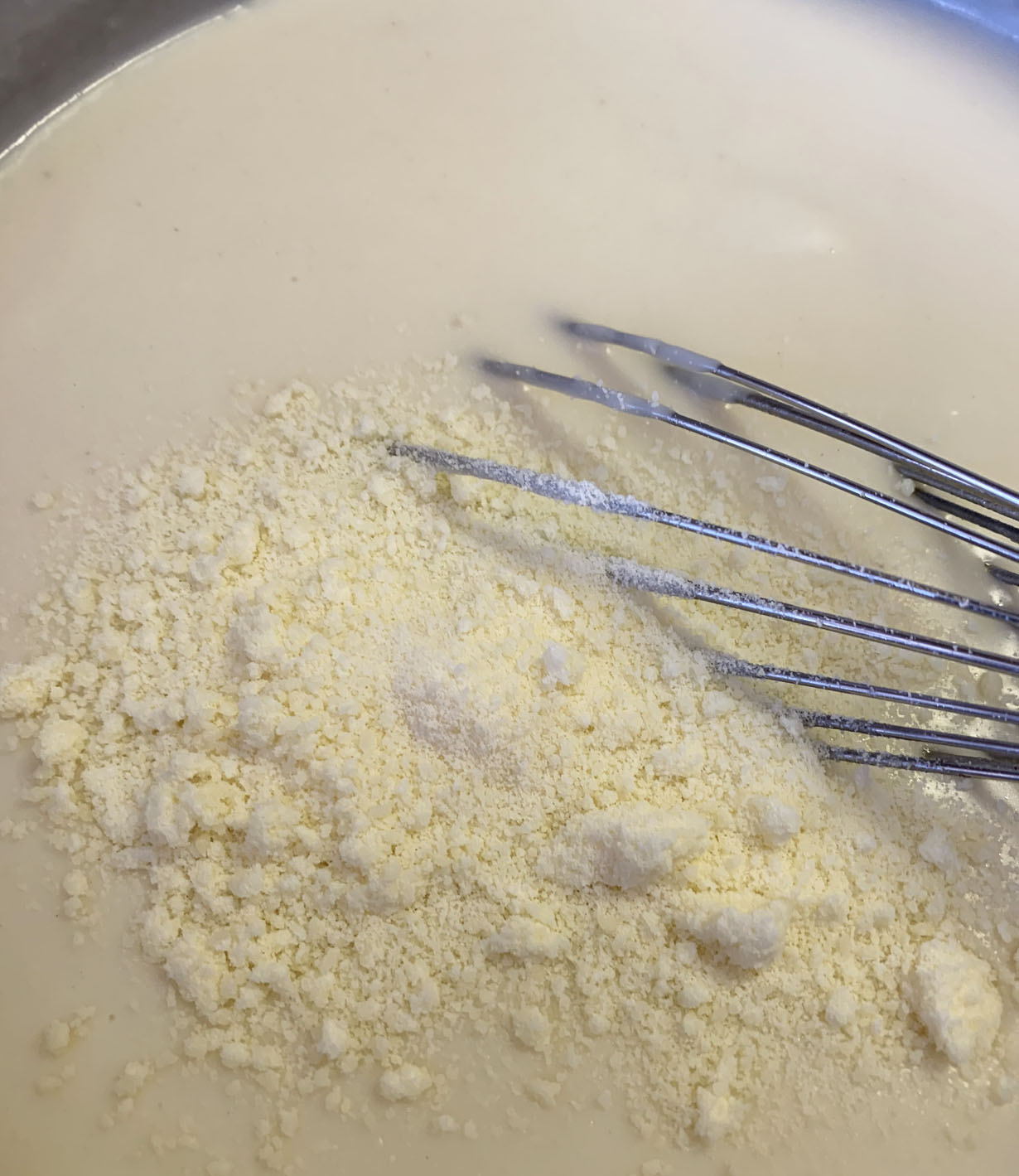 Prepare the Bechamel by melting the butter. Once the butter is melted, remove it from the heat and mix in the flour to make a roux (will form a clumpy, glue like mixture). Slowly add the milk a little at a time and stir into the roux. (By adding it a little at time, you avoid clumps.) Continue until the roux becomes liquid (approximately 4 cups). Stir in the remaining milk and the nutmeg. Return to a low heat and continuously stir until the sauce thickens. Once thick, add the Parmesan cheese and stir in until melted. Remove from heat. Beat the eggs and slowly pour in some of the sauce to temper them. Once the eggs have warmed up, whisk into the sauce.