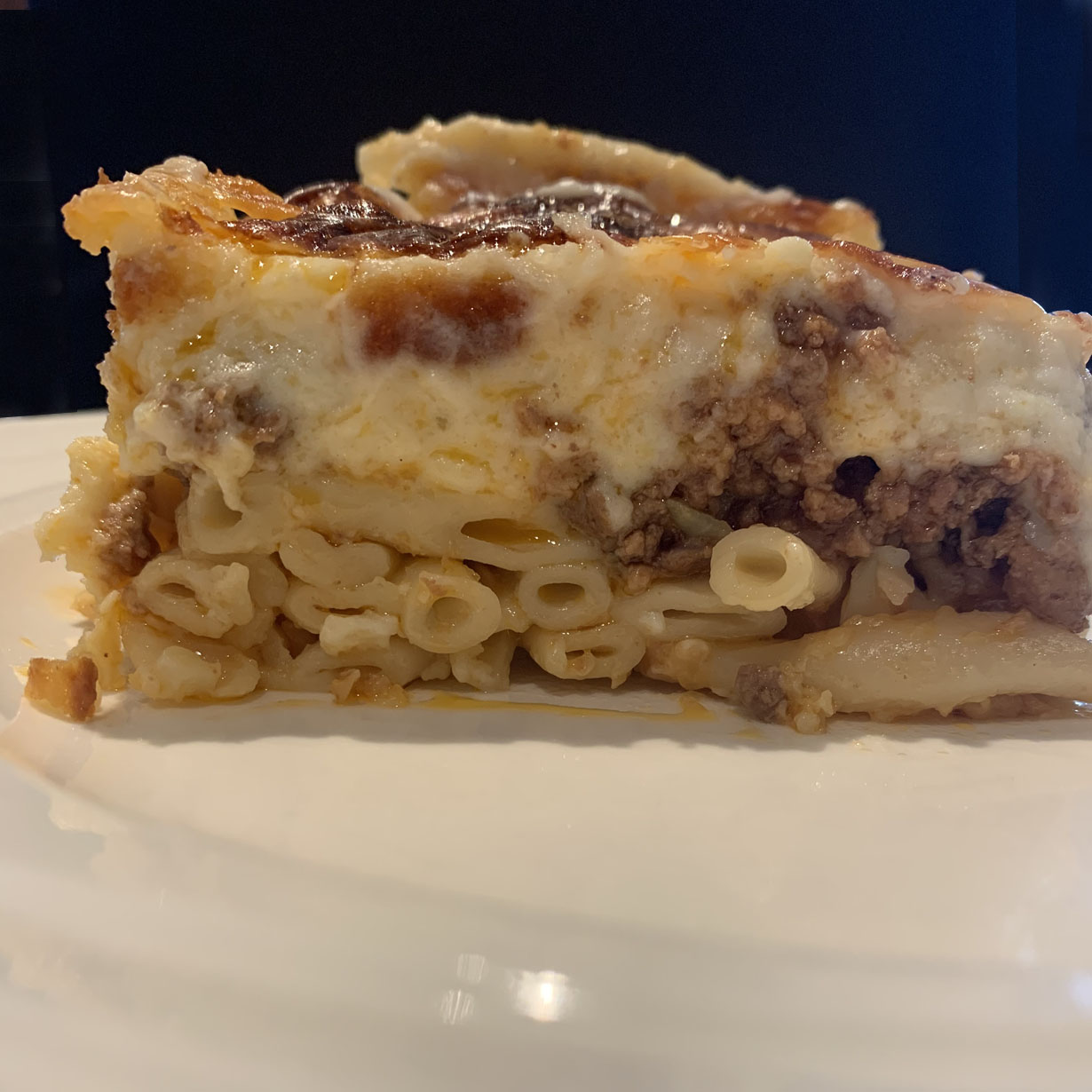 Otherwise known as the Greek lasagna, pastitsio is a dish that is rich and full of flavor. Usually made with some kind of pasta that has a hole in it, this version uses a smaller size, although you can use up to the size of penne. If you can, find Greek pasta as it has a slightly different flavor than traditional store bought brands.