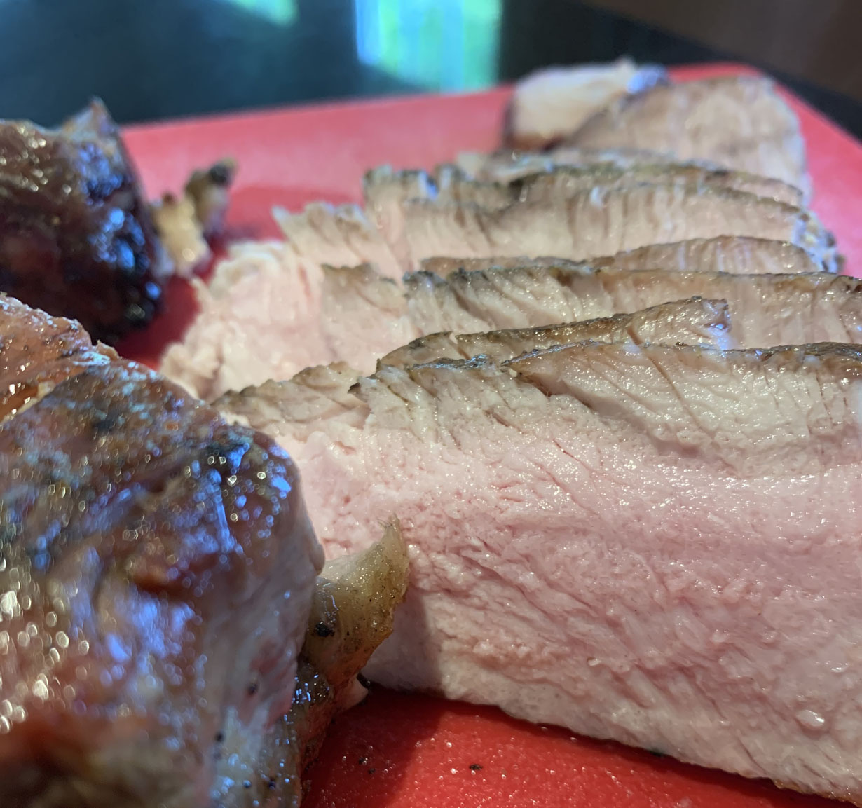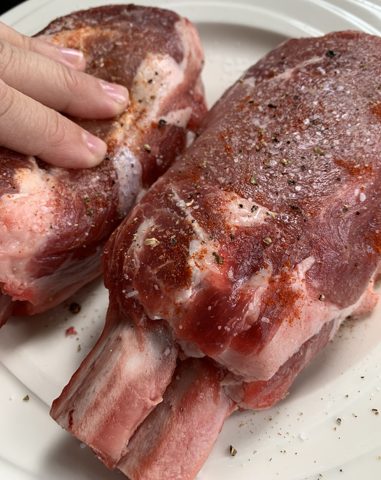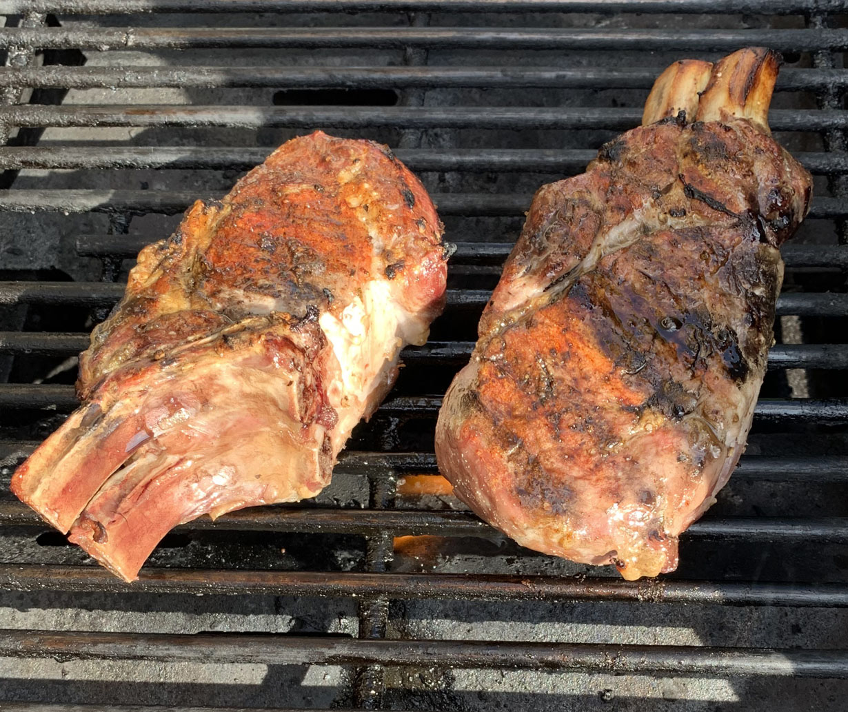 Season the pork chops with the smoked paprika, salt, and pepper, pressing the spices into the meat. Grill on high, turning over every 3 to 4 minutes until they reach an internal temperature of 145°F (approximate cooking time is 20 minutes). Once cooked, let them rest for 20 minutes and then remove the bones and slice into 1/2” thick pieces.