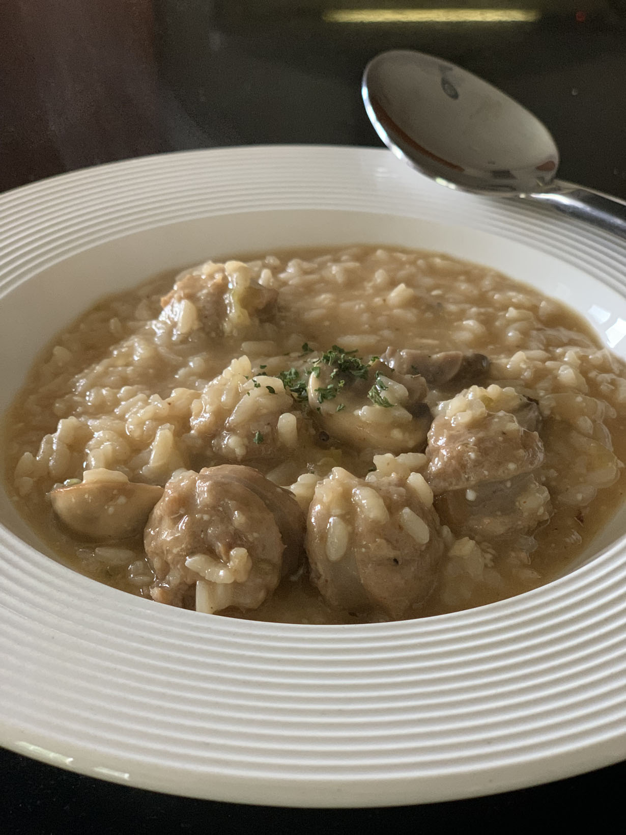 Risotto is a rich and creamy Italian rice dish that is not only filling but a great comfort food when the weather starts to cool down. Easy to make (and a good workout for your arms), this recipe adds a bit of heat to balance the richness. You can use any type of sausage (even hot if that’s what you prefer). The calzone rice is a bit firmer than traditional arborio, but is just as tasty.