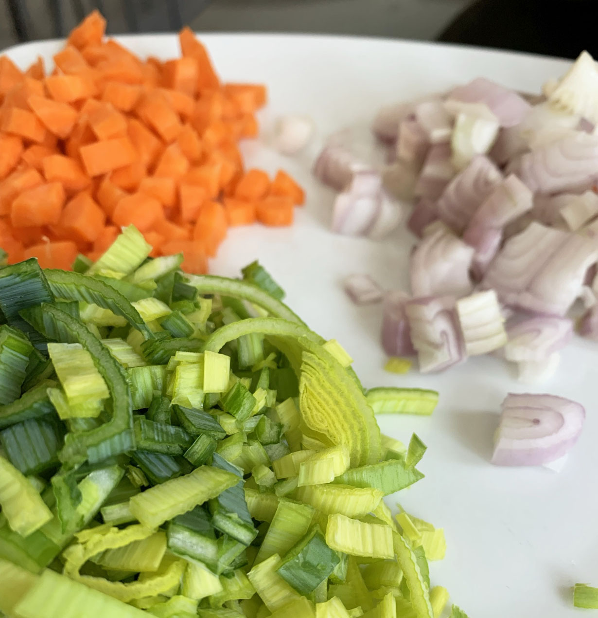 Preheat your oven to 350°F. Heat the oil in a pot and add the carrots, leeks, and shallots. Cook for 5 minutes or until the vegetables start to soften. Add the ground beef and veal and continue to cook until the meat is cooked through (approximately 15 minutes). Stir the mixture frequently to ensure the meat is broken up and does not stick to the bottom of the pan. Add the Worcestershire sauce, tomato paste, and stock. Cook for 5 minutes to reduce the stock. Stir in the peas and cook for 1 minute. Season with salt and pepper to taste. Transfer the beef mixture to a baking dish 9” x 12” oven-safe baking dish.