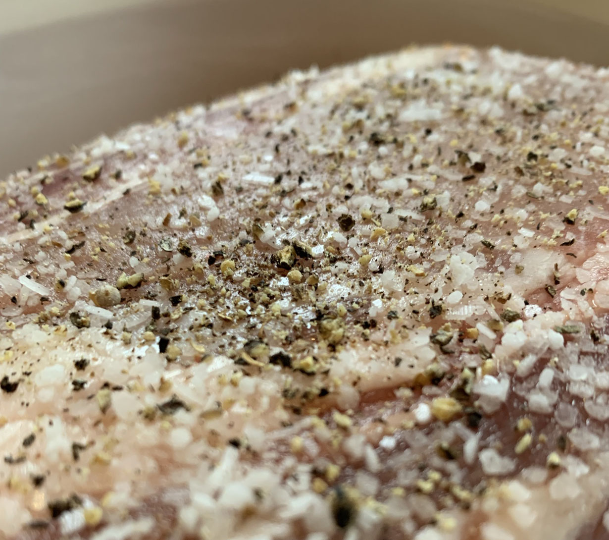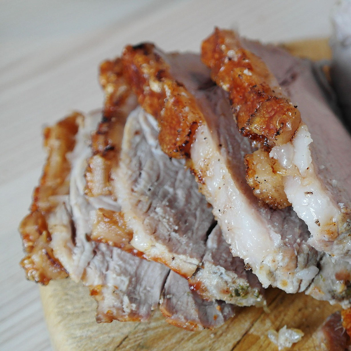 The next day, remove the roast from the marinade and place it on a layer of carrots and celery in a roasting pan. Season the top with additional salt and pepper in case the salt has fallen into the brine. Bring the pork roast to room temperature. In the meantime, preheat your oven to 450°F, and when the pork is at room temperature, roast for 15 minutes. After 15 minutes, turn the temperature down to 350°F and continue to cook until the roast has reached an internal temperature of 160°F (approximately 1 hour depending on the size of the roast).
