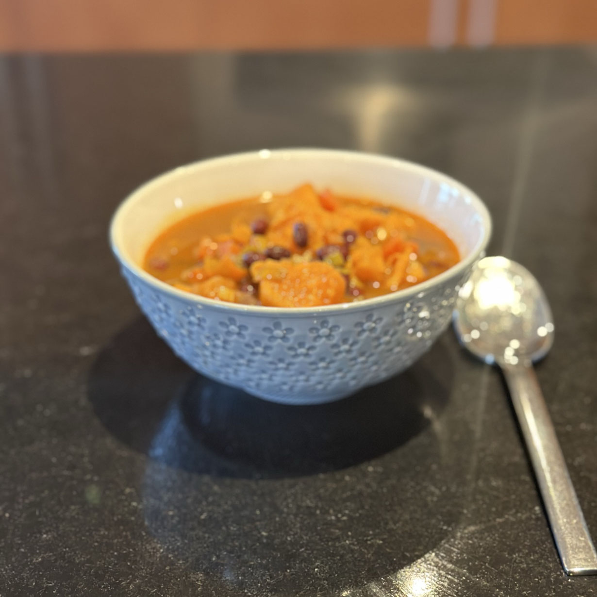 I am always looking at ways to make interesting meat-free food as an alternative in our dinner rotation. Stews are usually an easy go-to for this. Based on the Feijoada, a Brazilian stew usually made with pork, I’ve taken their idea and made it my own. The contradiction of sweet and spicy makes a delicious evening meal.
