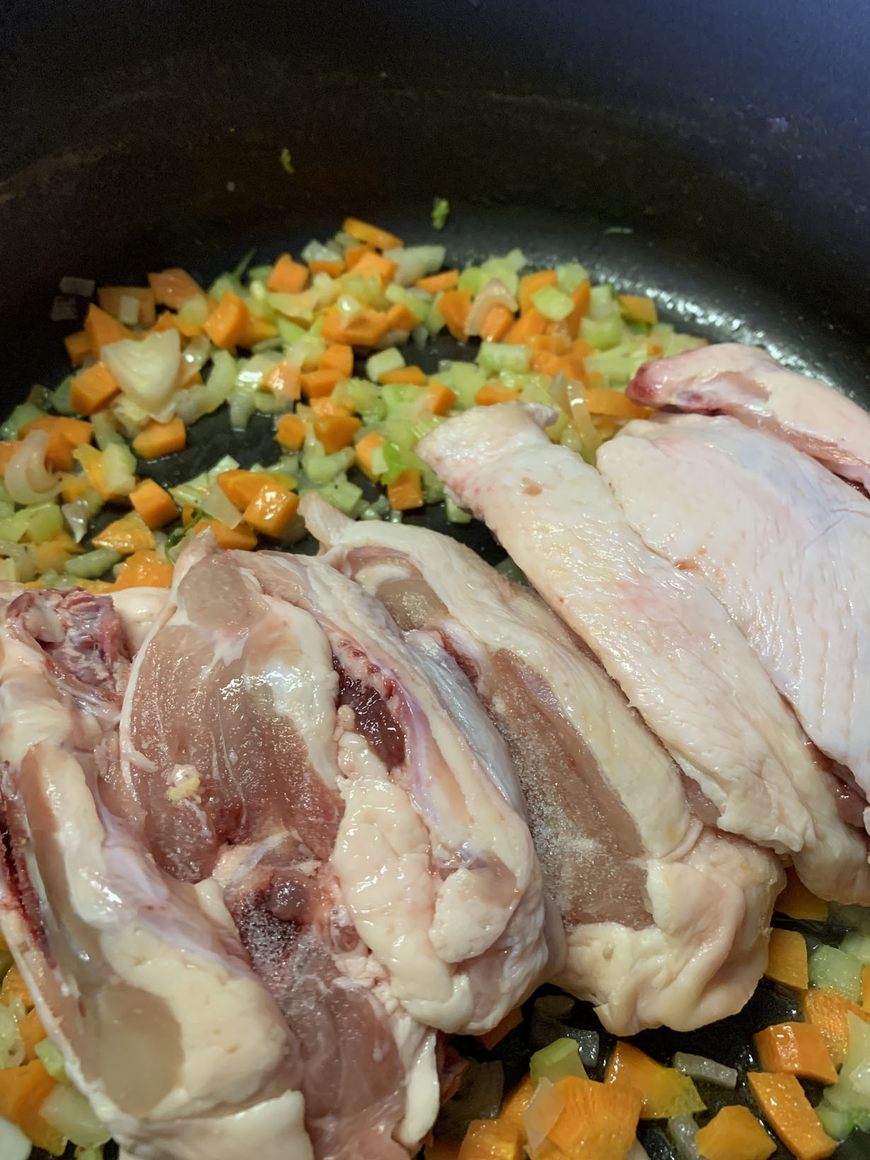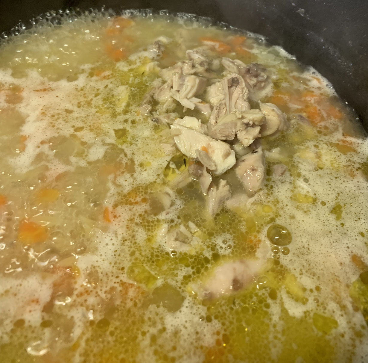 Heat the pot and add the carrots, celery, shallots, salt and butter. Cook for 5 minutes until the shallots are translucent. Add the chicken backs (* thighs or legs can be used, but the backs have the most flavor for the stock). Cook for an additional minute. Add the water and bring to a boil, removing any foam that appears on the surface. Cook for approximately one hour or until the water is reduced by half and then remove the chicken backs. Discard the skins and remove any meat with a fork. Add the meat back into the pot along with the orzo. If you have reduced the liquid too much, then add an additional cup of water at this point. Cook for 15 minutes until the orzo is tender.