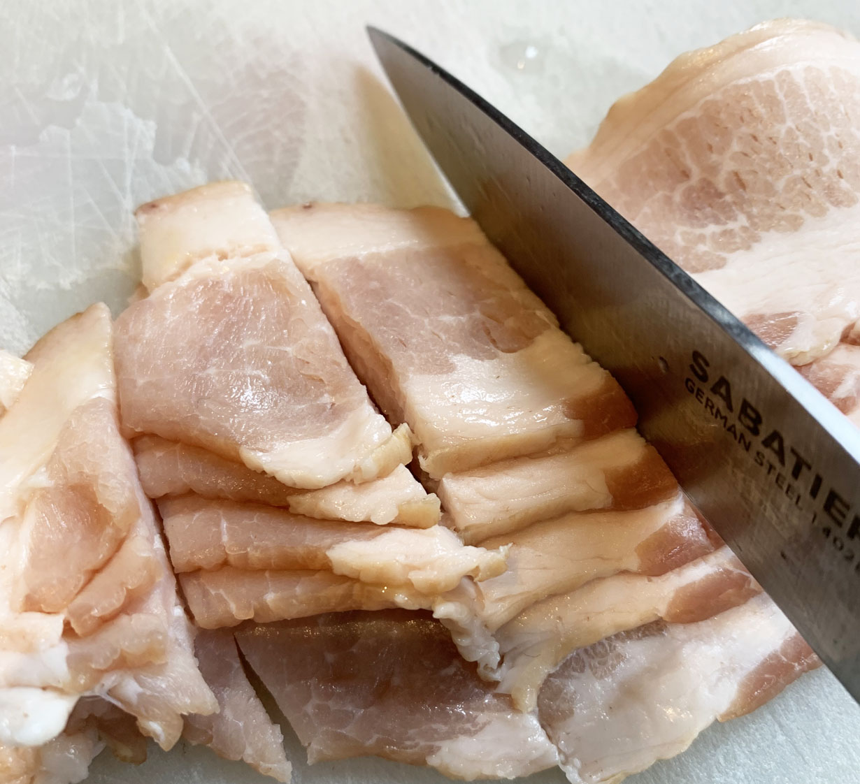 Bring 6 cups water to a boil and, once boiling, turn off the heat and add the corn. Cover the corn and let it rest for 10 minutes in the boiling water. After 10 minutes, remove the corn from the water and slice off the kernels.