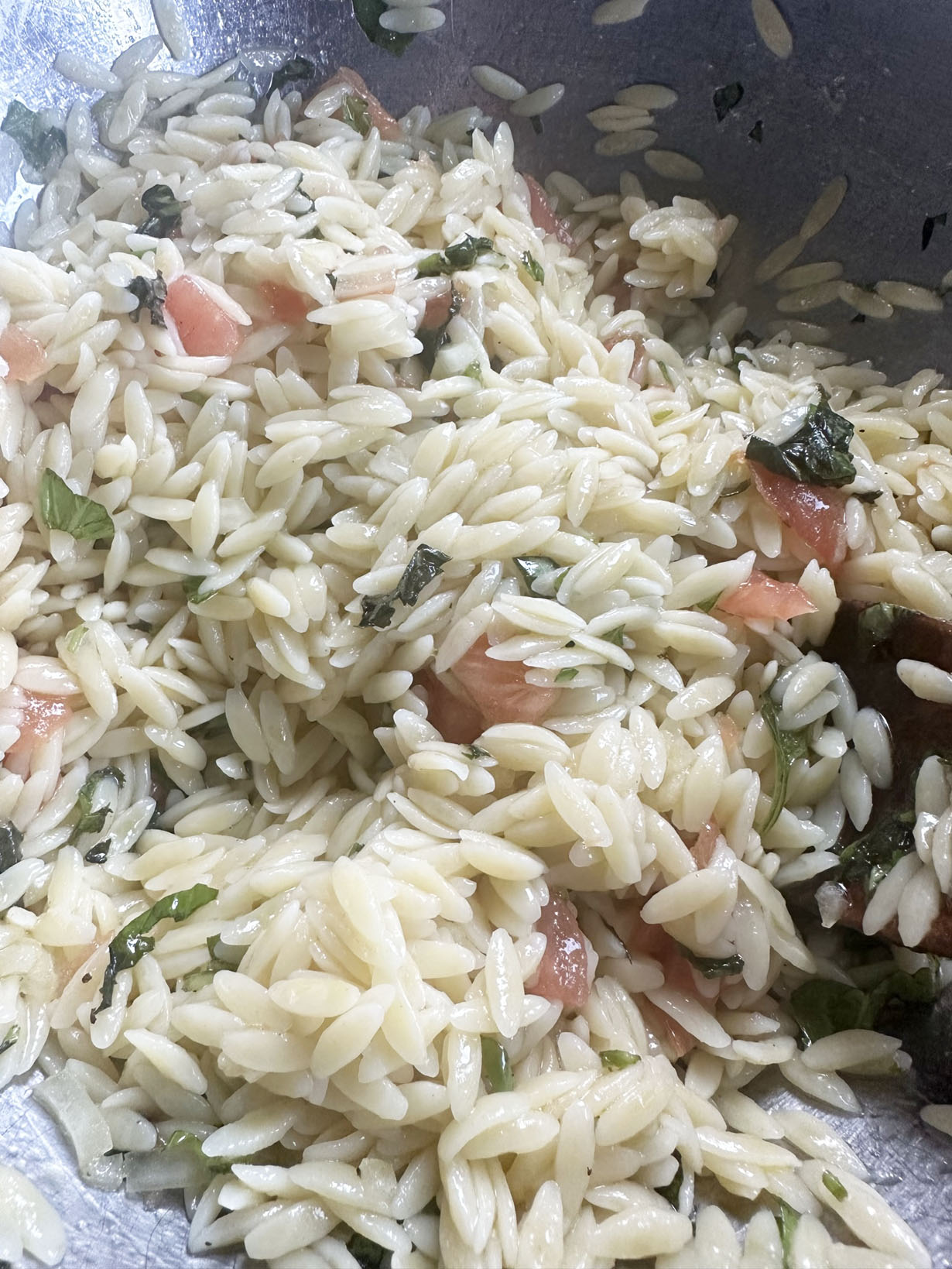 Salad is a wonderfully lighter way to enjoy this little oval-shaped pasta. Served with halloumi cheese to add a bit of a mild salt flavor, you will be happy to make this dish again and again. Serve as a side or as a light meal.