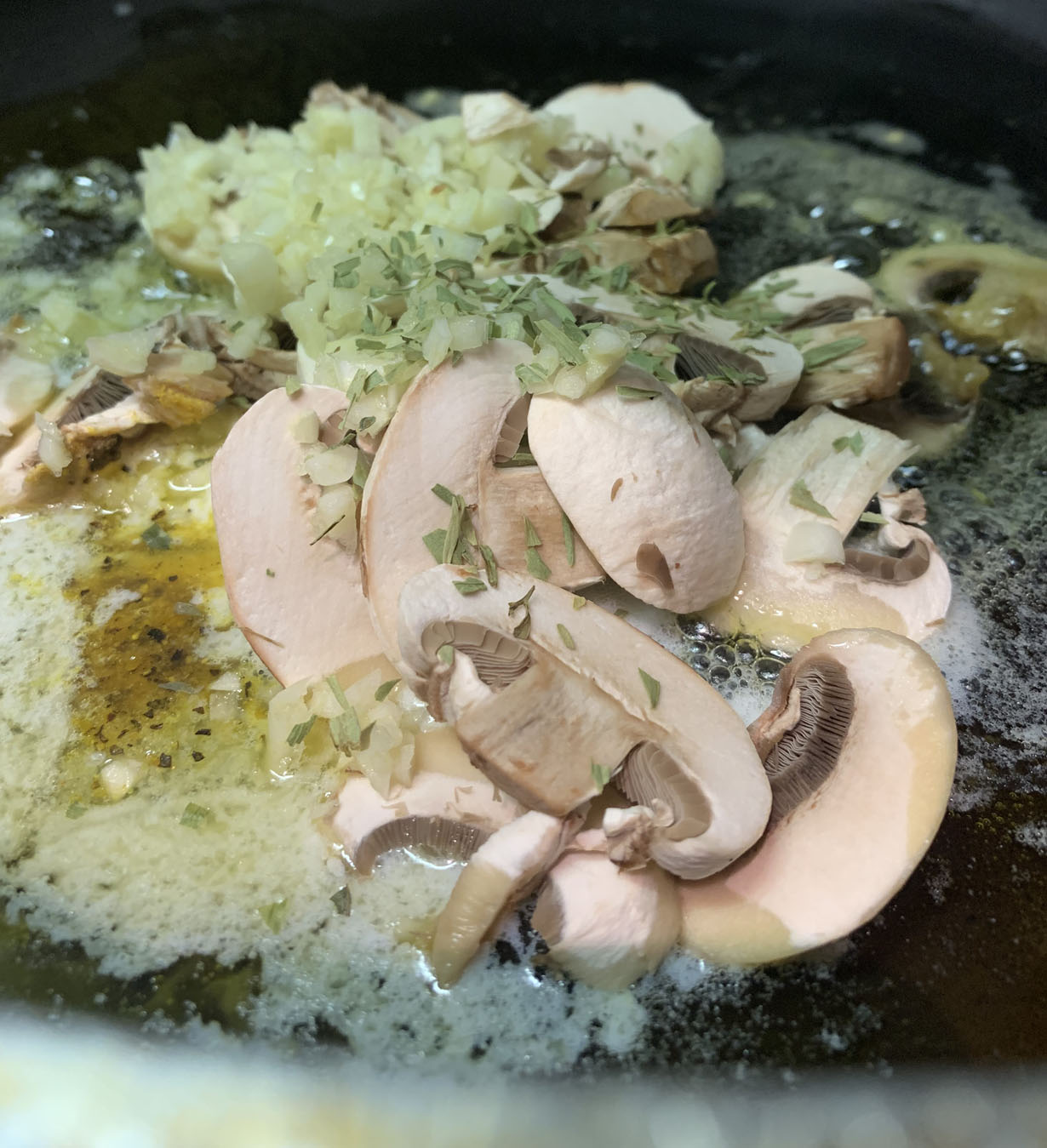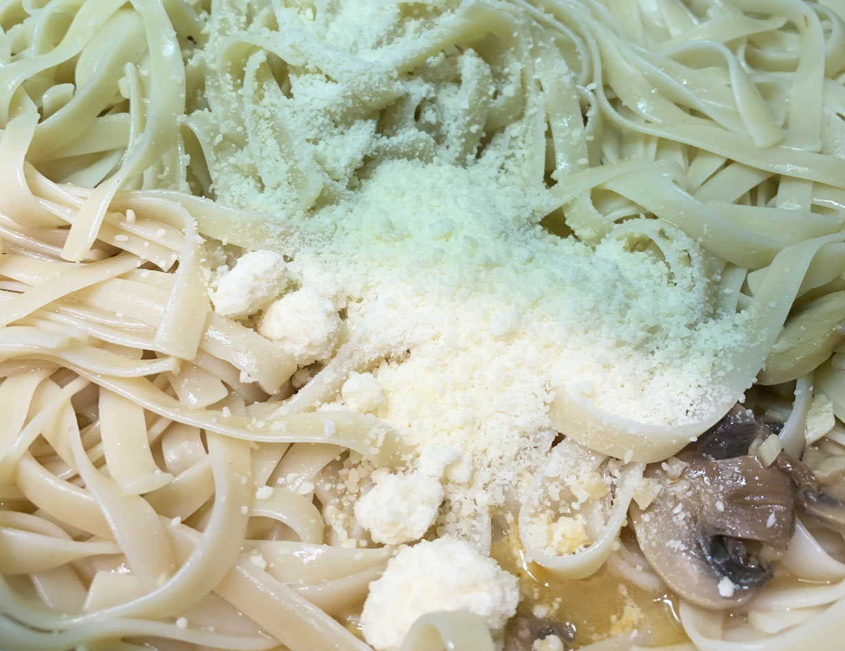 Melt the oil, lemon pepper, and butter in a deep pan. Add the garlic, salt, tarragon, and mushrooms and cook until the the mushrooms are tender. Add the cleaned shrimp and cook for 2 to 3 minutes on each side. Once cooked, remove the shrimp and set aside. If using scallops, place dried scallops in a cast iron pan with 1 tablespoon olive oil and sear on both sides. Any seafood used will be tossed with the pasta at the end. With the seafood removed add the wine and reduce to half. Set the sauce aside and boil the pasta in salted water for 8 minutes. The pasta will cook for a few minutes in the sauce so make sure not to overcook it.