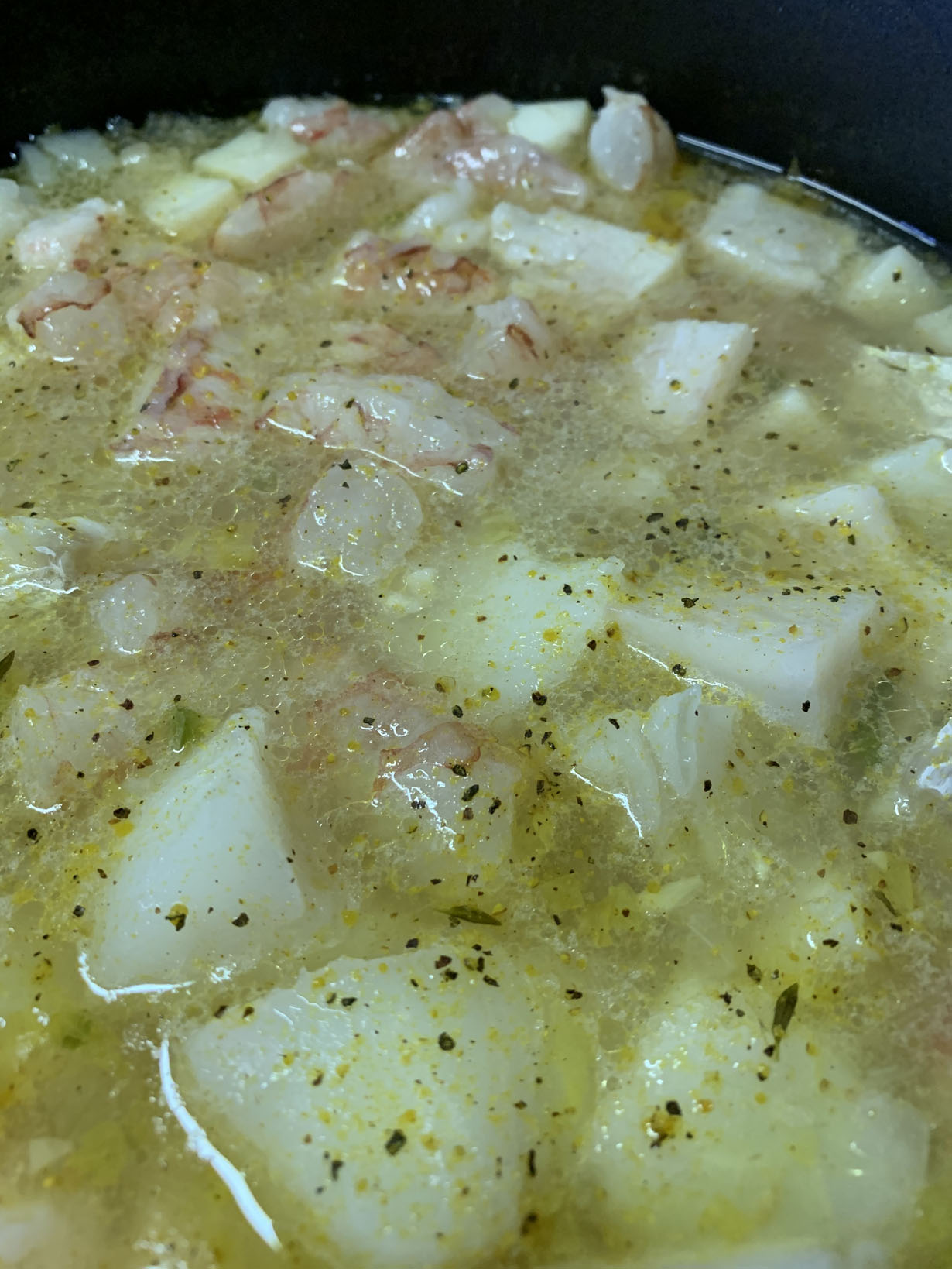 This delicious, creamy soup takes no time at all to make. Made with cod, shrimp and haddock, the sweet seafood bites are finished with a bit of lingering heat from the jalapeño.