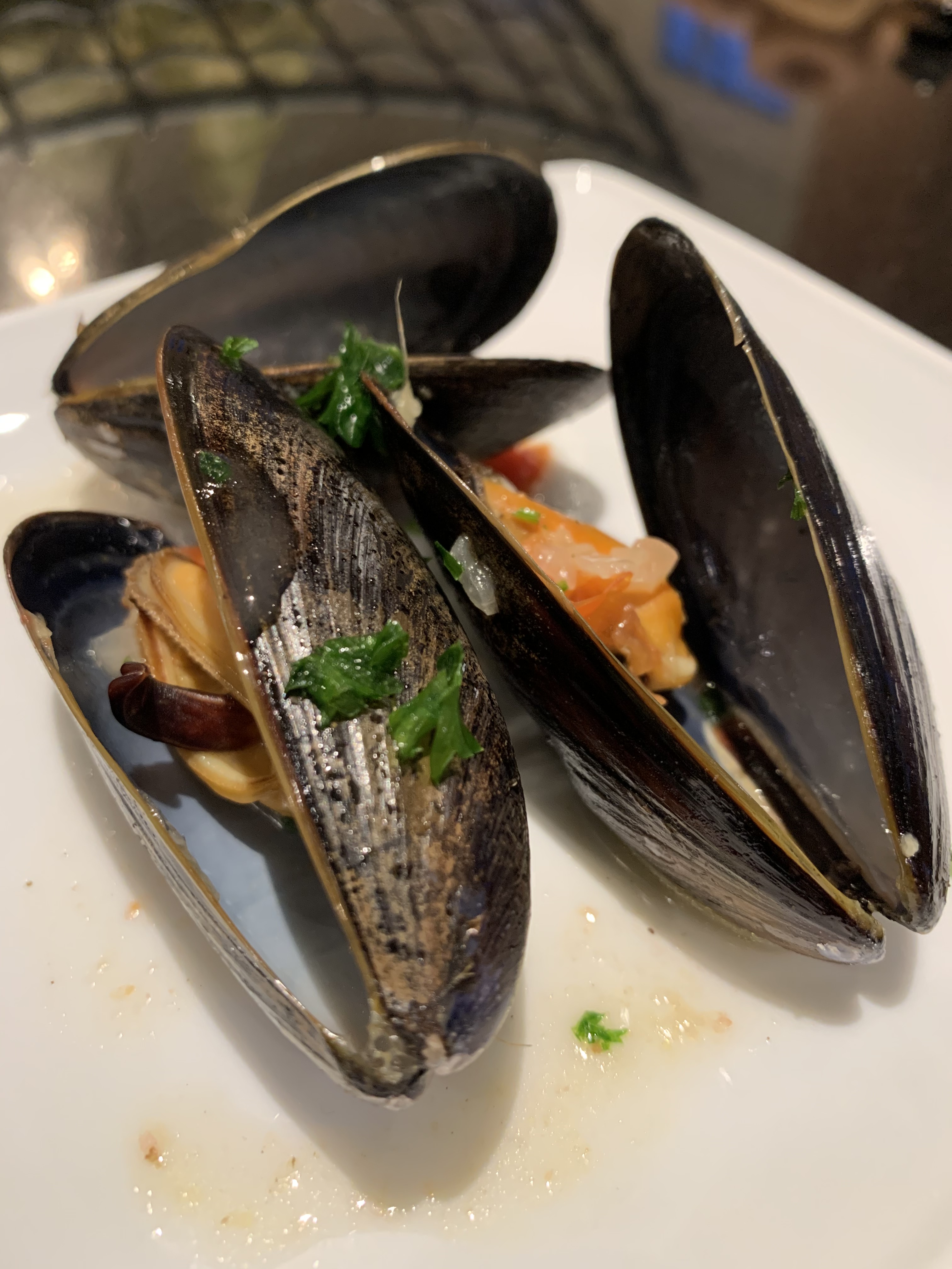 2 lb mussels, beards removed